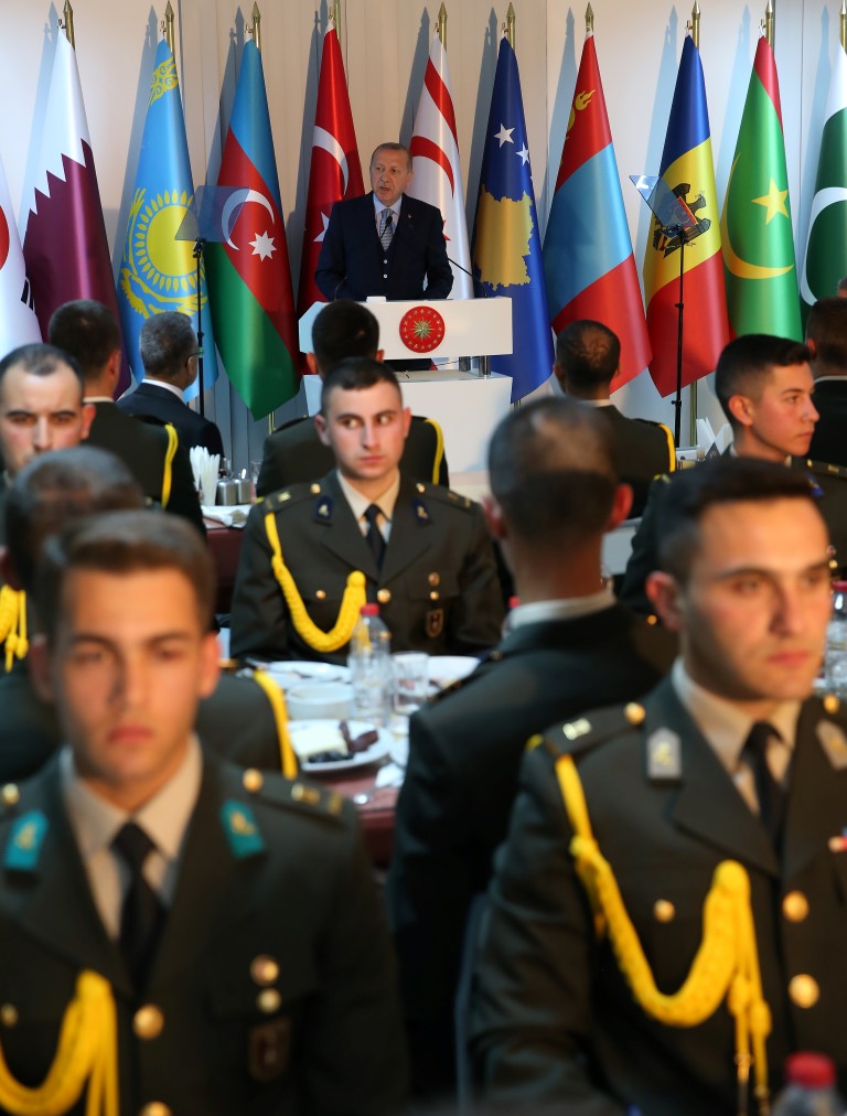 Kara Harp Okulu'nda Milli Savunma Üniversitesi öğrencileriyle iftarda bir araya gelen Cumhurbaşkanı Erdoğan, Türk milletinin tarih boyunca hep bölgesinin ve dünyanın en iyi askeri gücü olarak varlığını sürdürdüğünü belirtti. Mesele Türk ecdadı, Türk askeri olduğunda sayısal çoğunluğun, teknolojik donanımın asla tek başına belirleyici olamayacağını söyleyen Erdoğan, "Çünkü bizim milletimizde öyle bir yürek, öyle bir taktik zeka vardır ki, askeri mücadeleyi kazanacak bir yolu daima bulur" diye konuştu.
