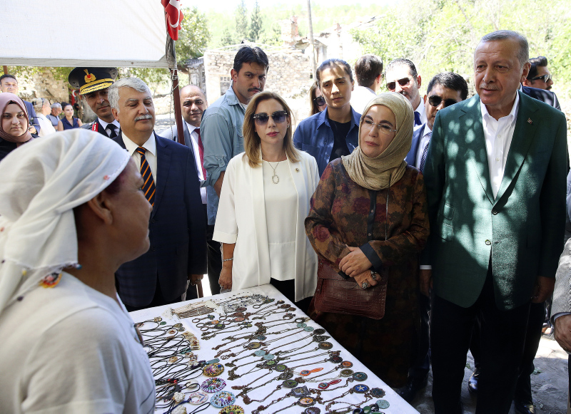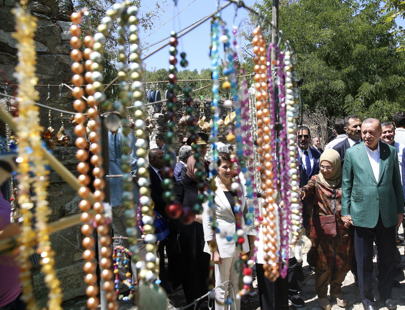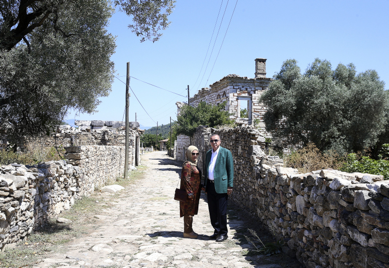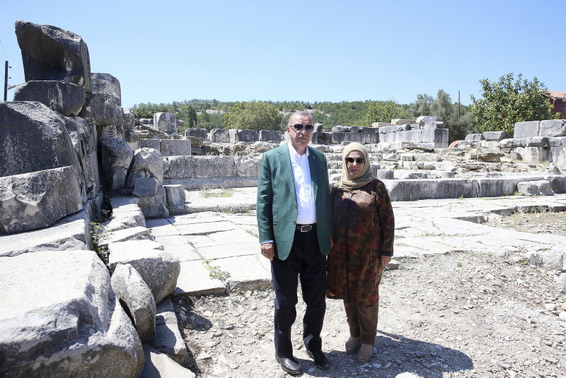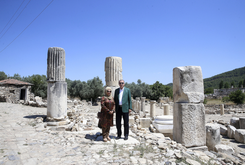 Başkan Recep Tayyip Erdoğan ve eşi Emine Erdoğan, Muğla'nın Yatağan ilçesindeki Stratonikeia Antik Kenti'ni ziyaret etti.