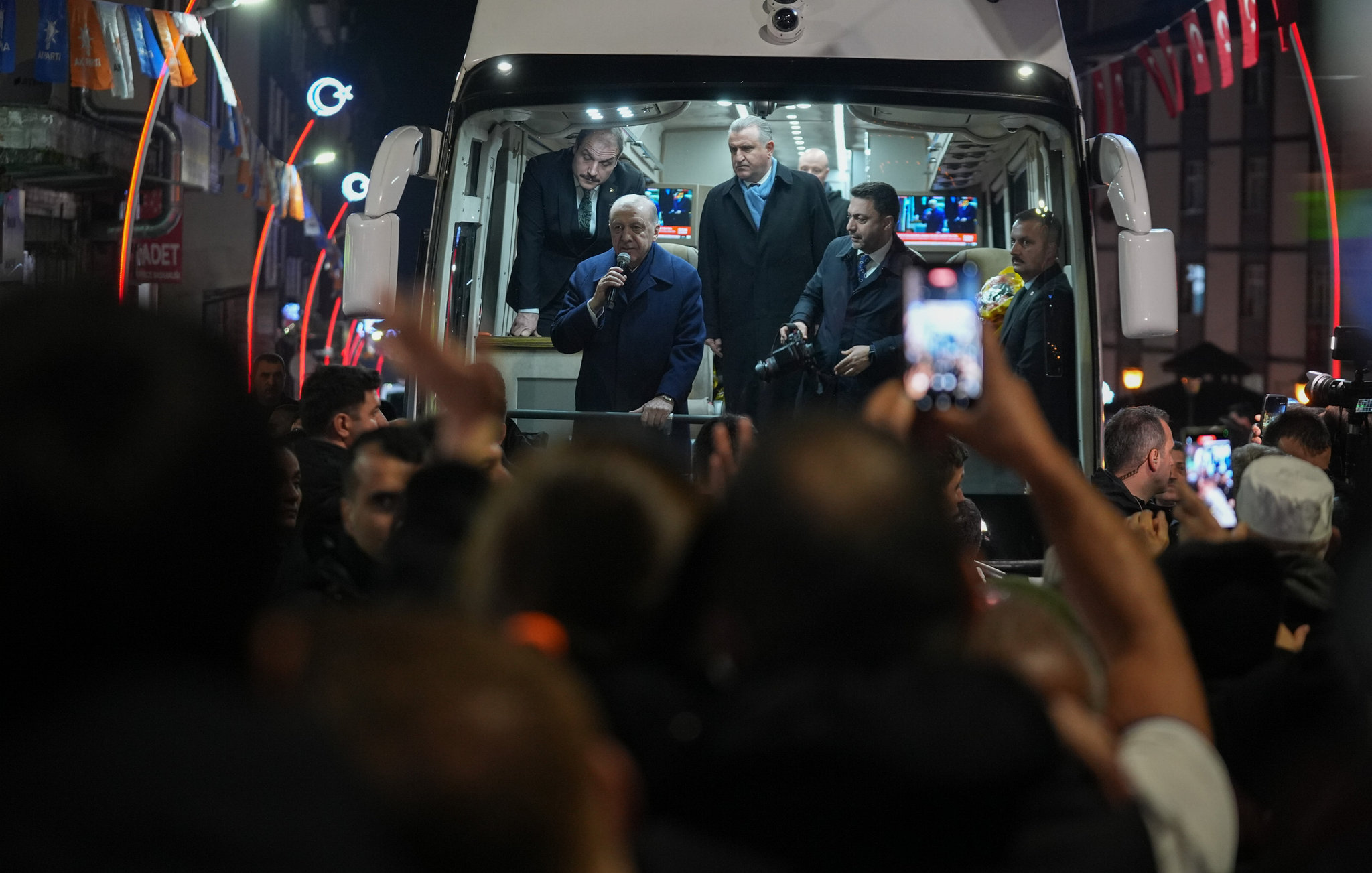 Erdoğan'ın Güneysu'ya varışı, gece geç saatler olmasına rağmen adeta bir bayram havasında geçti. Sokaklara dökülen vatandaşlar, Başkan Erdoğan'ı büyük bir coşkuyla karşıladı. Selman Kutlu, bölgedeki atmosferi, "Güneysu merkezde her zaman olduğu gibi baba ocağı memleketinde o Rizeli hemşehrileri gece geç saatlerde de olsa onu beklediler ve yoğun bir ilgiyle karşıladılar diyebiliriz" ifadelerini kullandı. Başkan Erdoğan, kendisine gösterilen sevgi seli sonrası otobüste vatandaşlara seslendi.