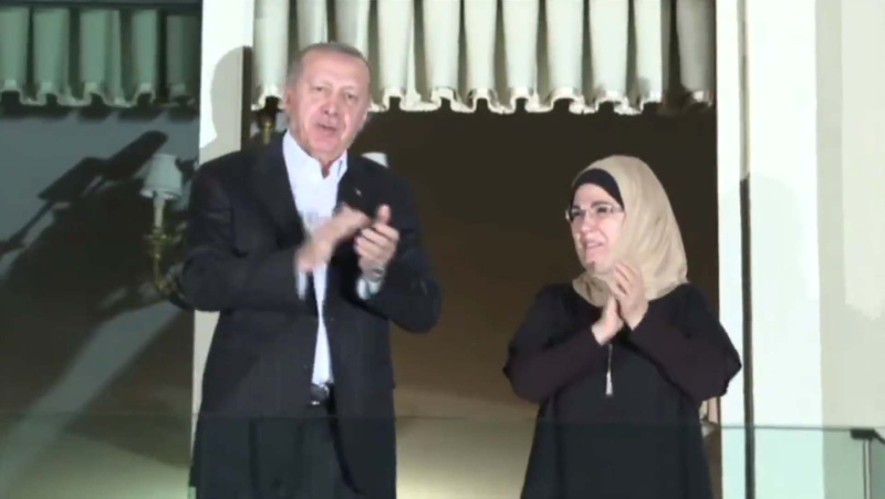 Başkan Recep Tayyip Erdoğan, koronavirüsle mücadelede yoğun mesai harcayan sağlık çalışanlarını eşi Emine Erdoğan ile birlikte alkışladı.