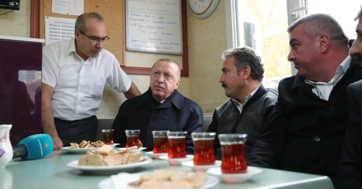 Esnaf ziyaretlerini aksatmayan, halkın içinde gezmeyi sürdüren Başkan Recep Tayyip Erdoğan, Çukurambar'da bir taksi durağında taksicilerle çay eşliğinde simit yiyerek sohbet etti.