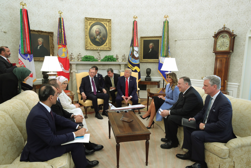 Cumhurbaşkanı Erdoğan ile Trump Beyaz Saray'da bir araya geldi. Görüşmenin 1,5 saat sürmesi planlanıyor. Kritik görüşmede, her iki ülke adına önemli konuların ele alınması bekleniyor