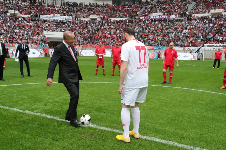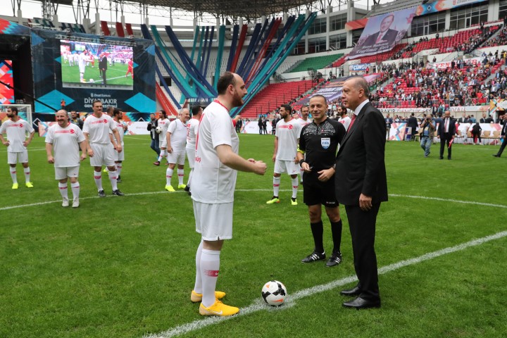 33 bin kişilik Diyarbakır Stadyumu'nda oynanan maçın başlama vuruşunu Başkan Recep Tayyip Erdoğan yaptı.