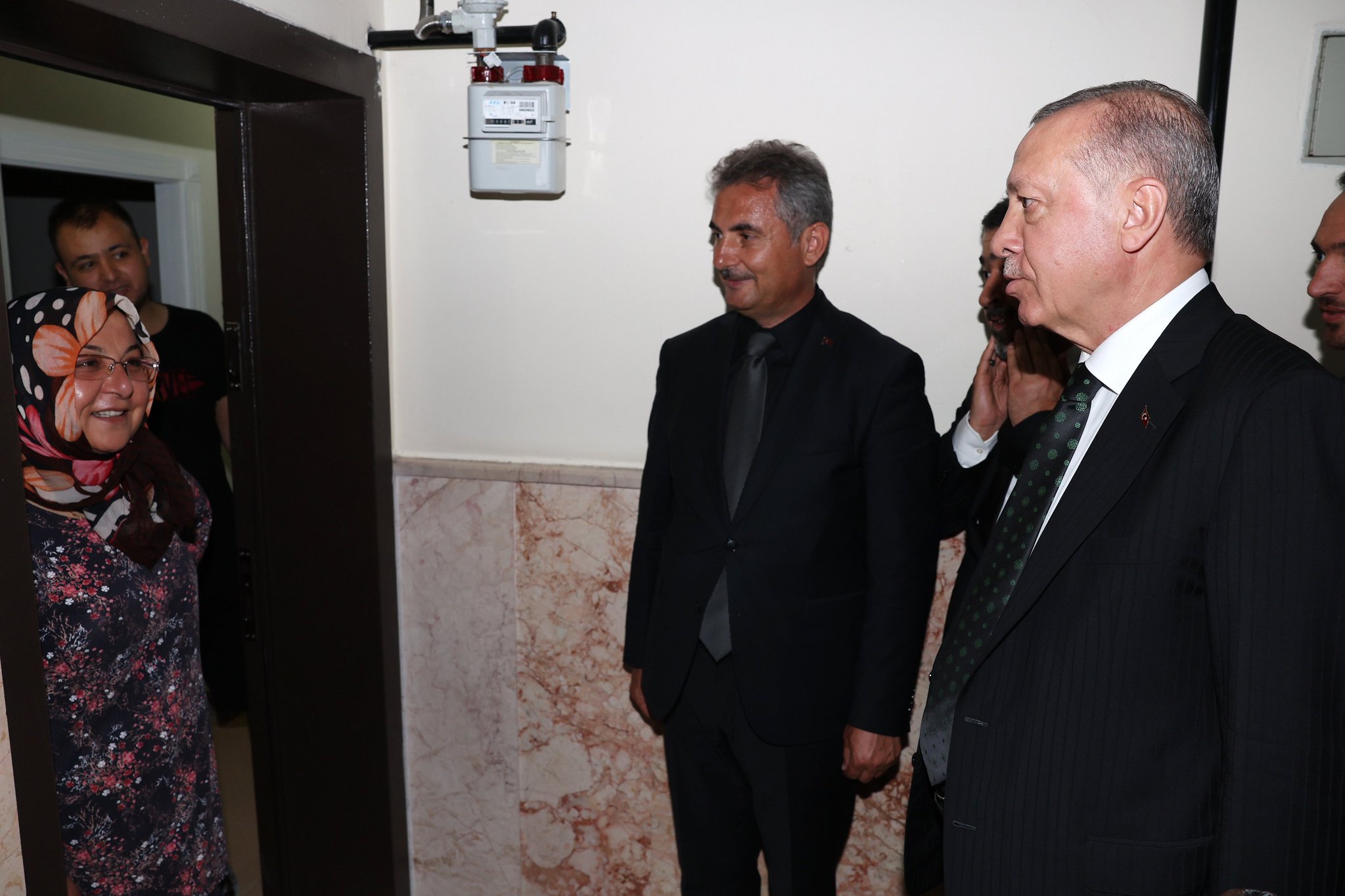 Erdoğan'a, Cumhurbaşkanı Yardımcısı Fuat Oktay, İçişleri Bakanı Süleyman Soylu, Kültür ve Turizm Bakanı Mehmet Nuri Ersoy ve Cumhurbaşkanı Sözcüsü İbrahim Kalın da eşlik etti.
