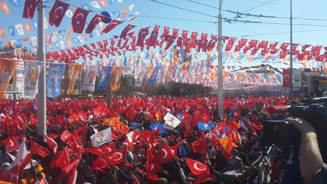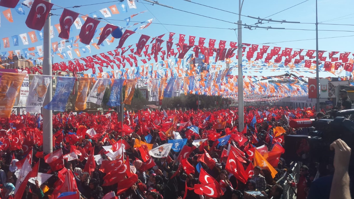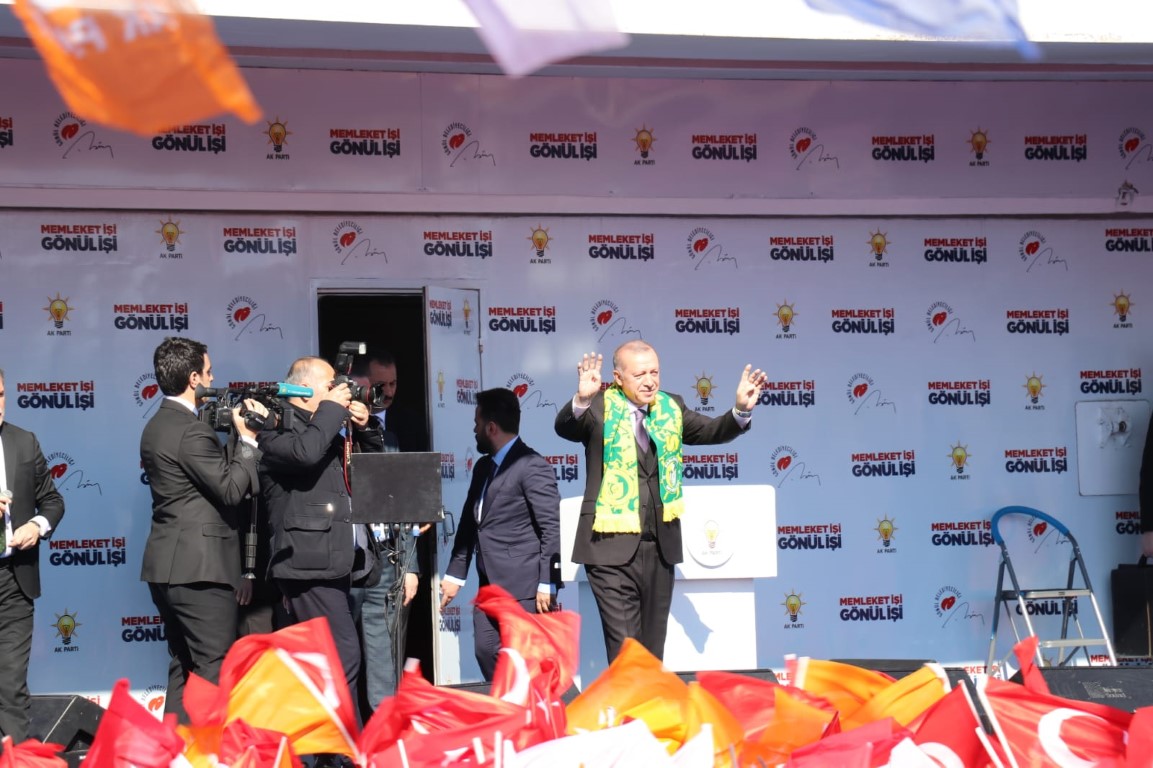 Başkan Erdoğan, konuşmasının başında partisinin "Nereden nereye" adlı seçim şarkısını söylerken sanatçı İbrahim Tatlıses de platforma çıkarak, Erdoğan'ın yanında vatandaşları selamladı.