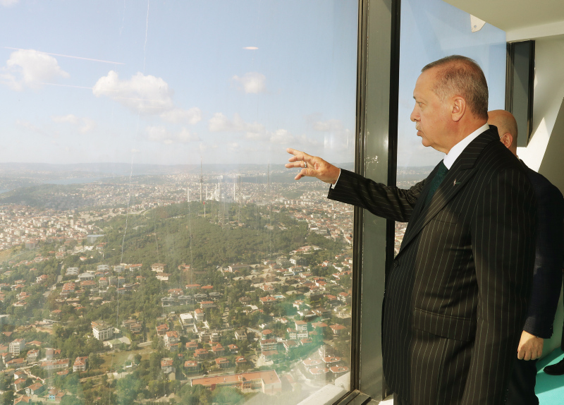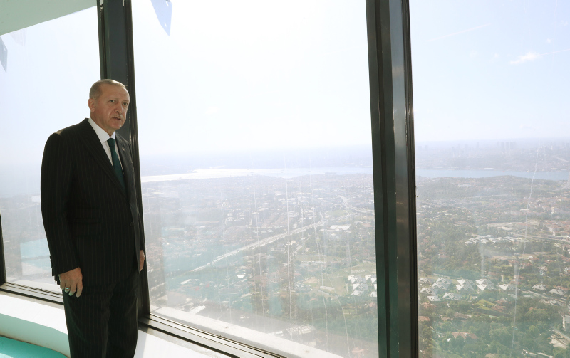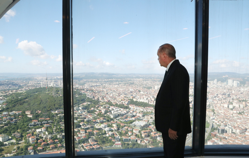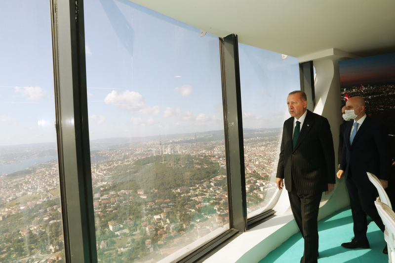 Erdoğan daha sonra Vahdettin Köşkü'nden ayrılarak yapımı devam eden Çamlıca Kulesi'nde incelemelerde bulundu, yetkililerden bilgi aldı.