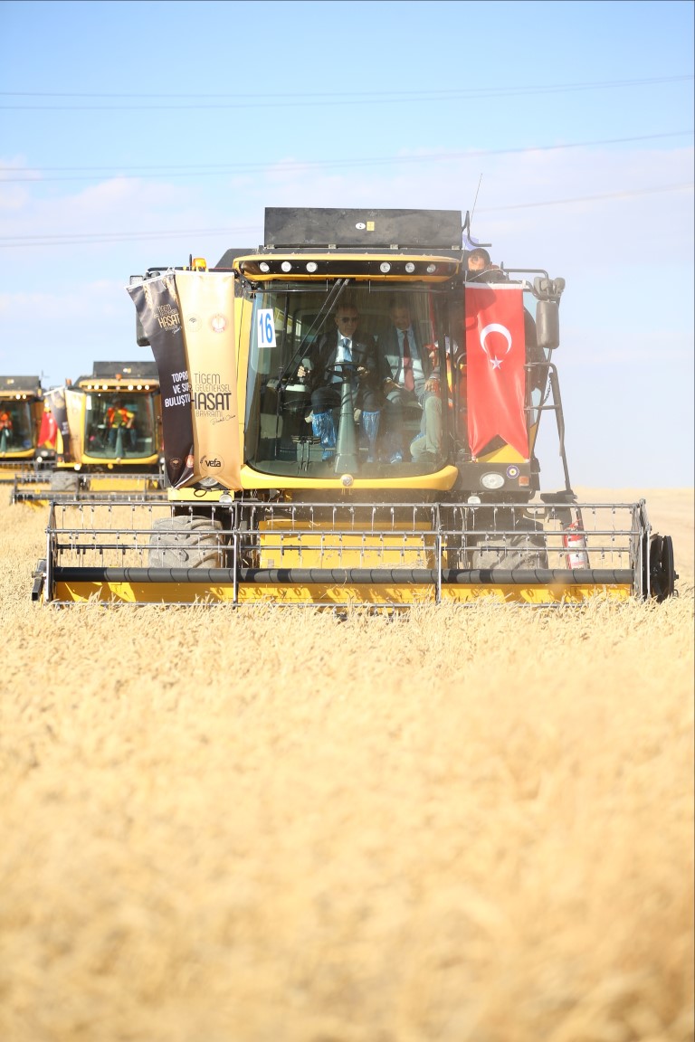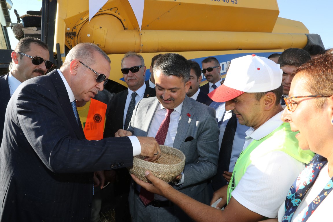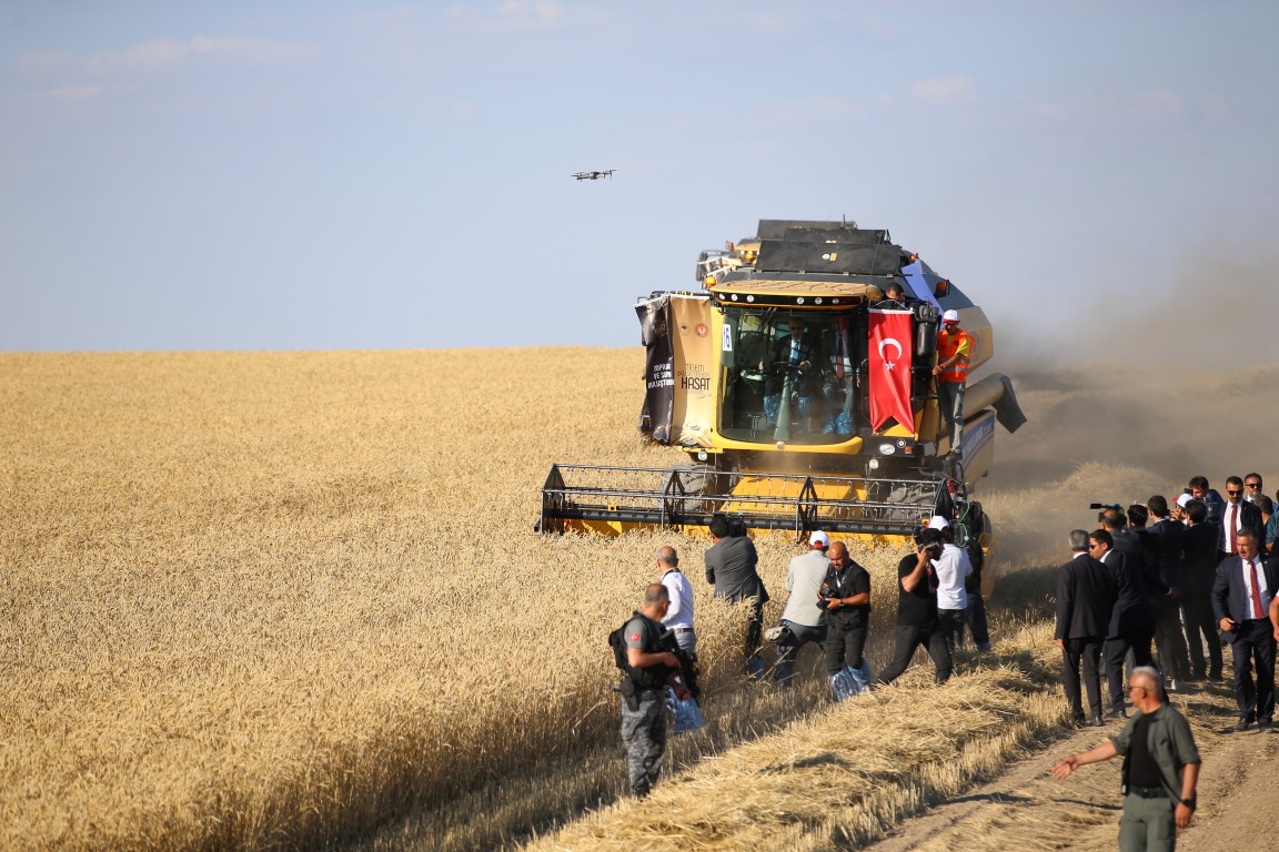Diyanet İşleri Başkanı Ali Erbaş'ın okuduğu duanın ardından Erdoğan, Tarım ve Orman Bakanı Bekir Pakdemirli ile biçerdövere bindi. Erdoğan, biçerdöveri kendisi kullanarak buğday hasadını gerçekleştirdi.