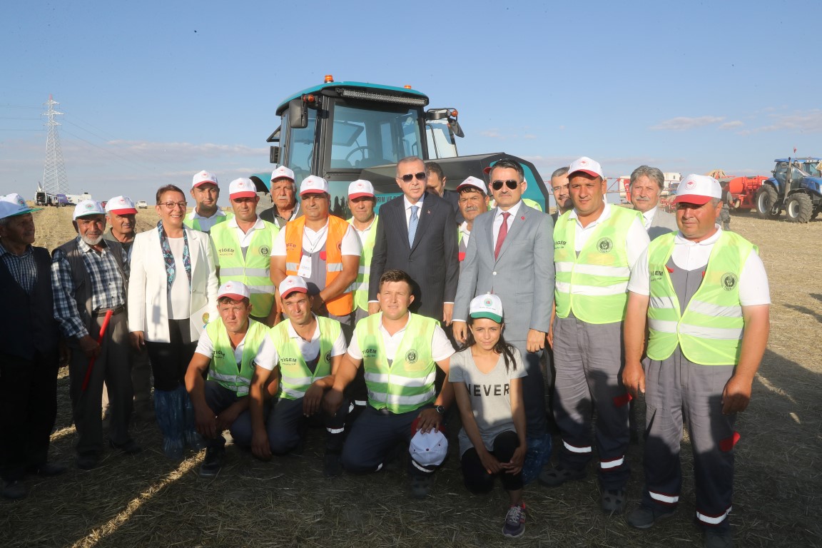 Erdoğan, TİGEM 69. Geleneksel Hasat Bayramı etkinliği kapsamında Polatlı Tarım İşletme Müdürlüğünde bulunan hasat alanına geldi.