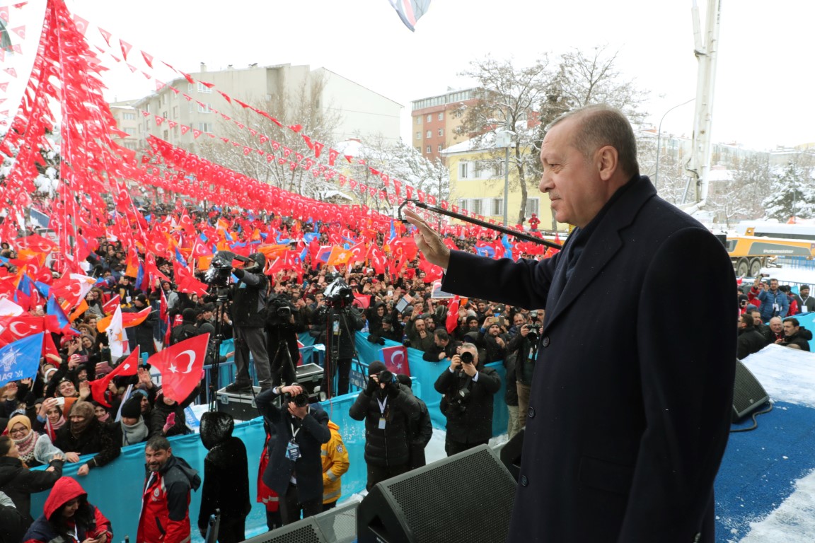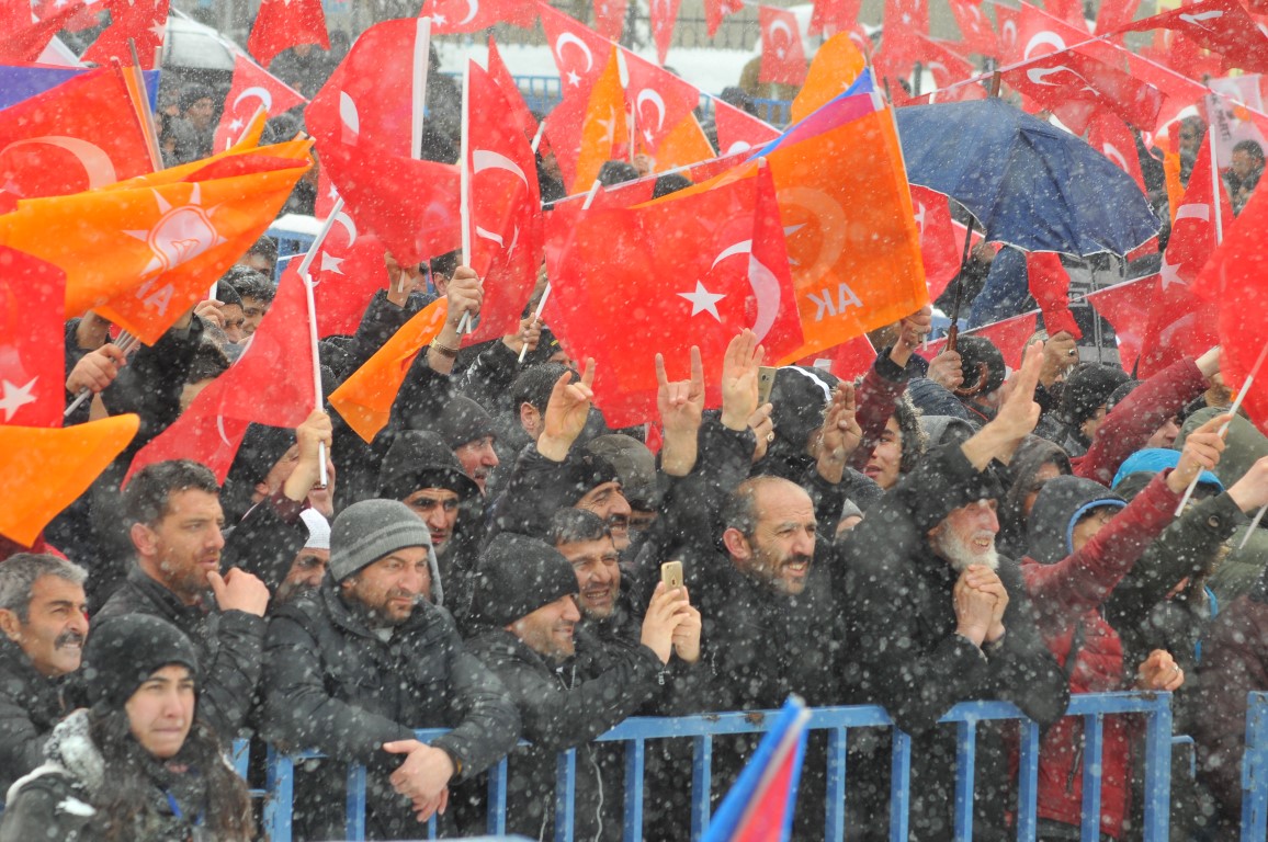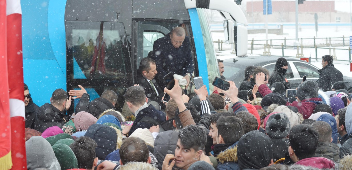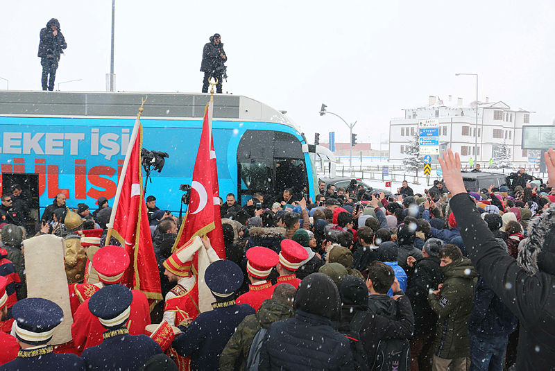 Cumhurbaşkanı ve AK Parti Genel Başkanı Recep Tayyip Erdoğan, partisinin mitingine katılmak üzere geldiği Erzurum'a kar yağışı ve soğuk havaya rağmen vatandaşlarca coşkuyla karşılandı.