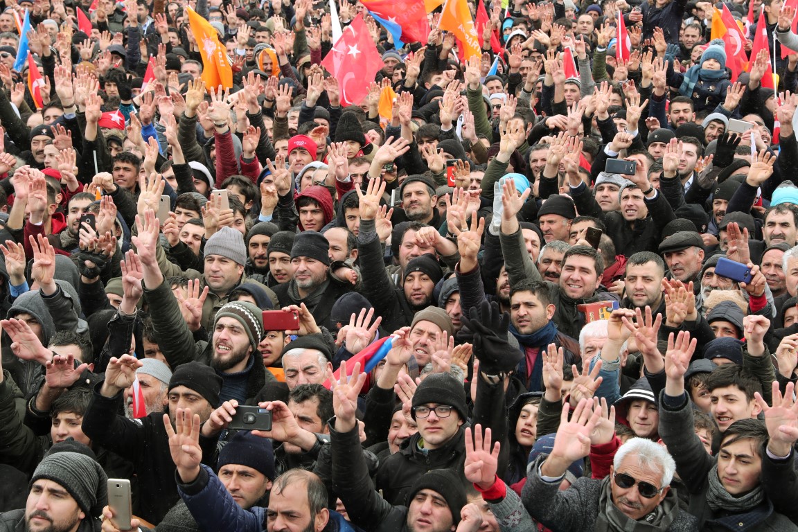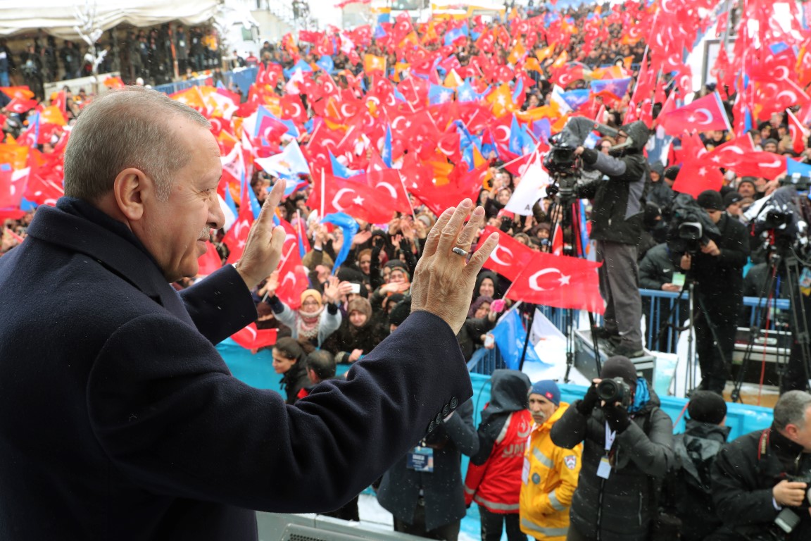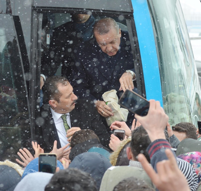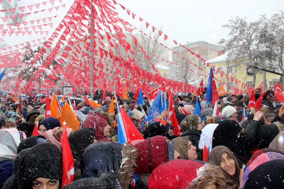 Cumhurbaşkanı ve AK Parti Genel Başkanı Recep Tayyip Erdoğan, partisinin mitingine katılmak üzere geldiği Erzurum'a kar yağışı ve soğuk havaya rağmen vatandaşlarca coşkuyla karşılandı.