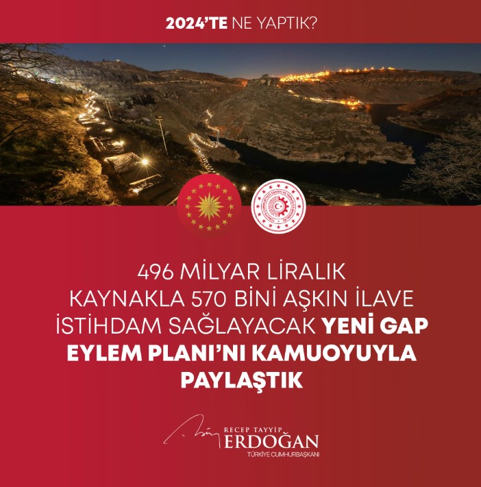 496 milyar liralık kaynakla 570 bini aşkın ilave istihdamın önünü açacak olan Yeni GAP Eylem Planımızı kamuoyuyla paylaştık.