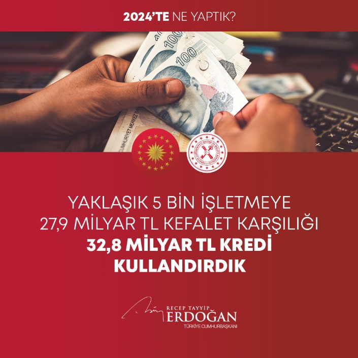 Hazine Destekli Kefalet Sistemi kapsamında yaklaşık 5 bin işletmemize 32,8 milyar lira kredi kullandırdık.