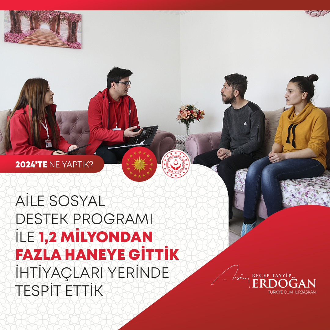Aile Sosyal Destek Programı ile 1,2 milyondan fazla hanemize ulaştık, ihtiyaçları yerinde gözlemledik, ailelerimizin sıkıntılarını çözüme kavuşturduk.