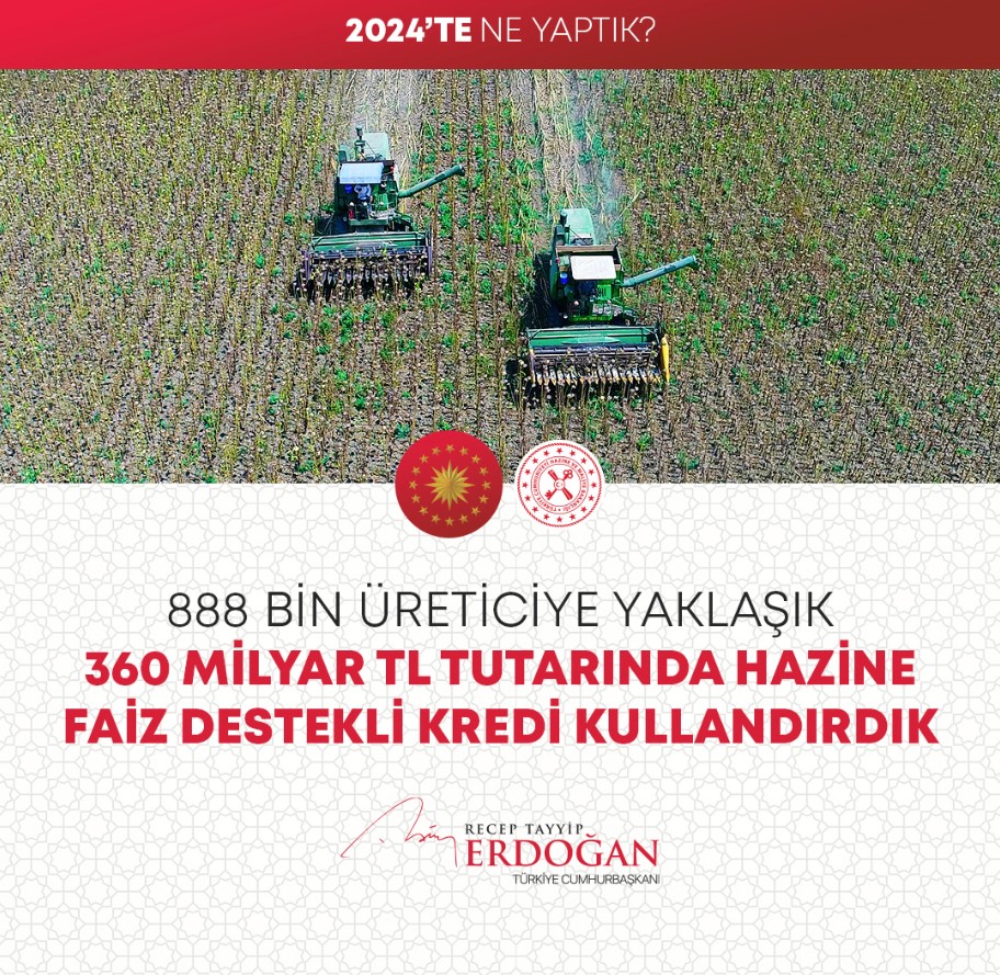 Başkan Recep Tayyip Erdoğan sosyal medya hesabından yaptığı paylaşımda 2024 yılında yapılan hizmet ve projeleri özetledi. Erdoğan paylaşımlarına "Gece gündüz demeden aşkla çalıştık; ülkemize her alanda çok önemli eserler, hizmetler, projeler, yatırımlar kazandırdık." notunu düştü. İşte 2024 yılında yapılan tüm hizmetler...