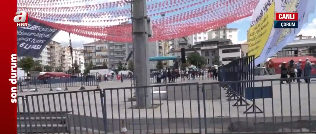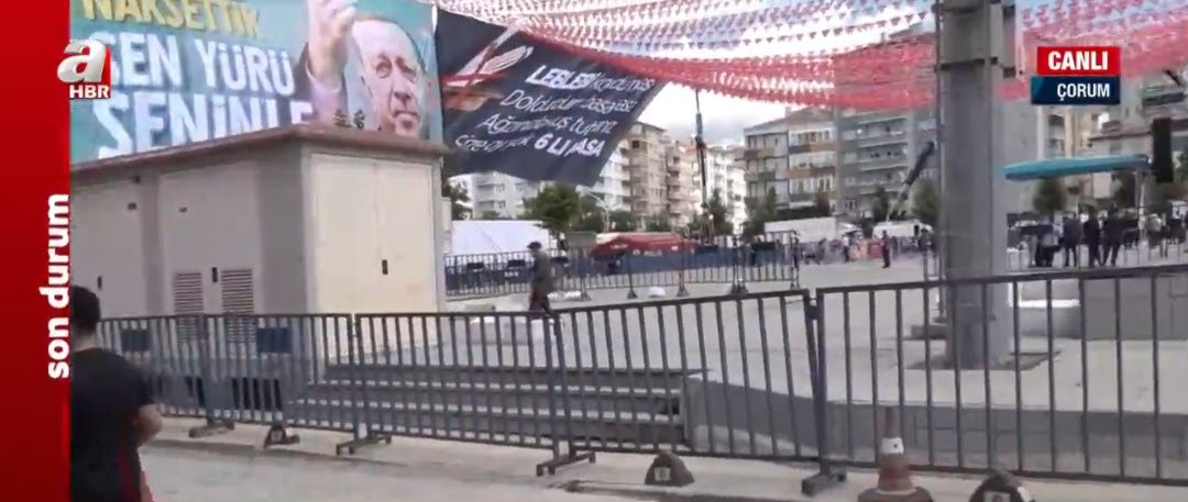 Başkan Erdoğan Çorum'da yapımı tamamlanan projelerin toplu açılış törenine katılacak. Çorumlular sabah saatlerinden itibaren miting alanını çevrelemiş durumda. Öte yandan alana asılan pankartlar oldukça dikkat çekti. Detayları A Haber muhabiri Murat Onur bölgeden aktardı. Çorum Belediye Başkanı Halil İbrahim Aşgın, yaşanan heyecanı A Haber canlı yayınında anlattı.
