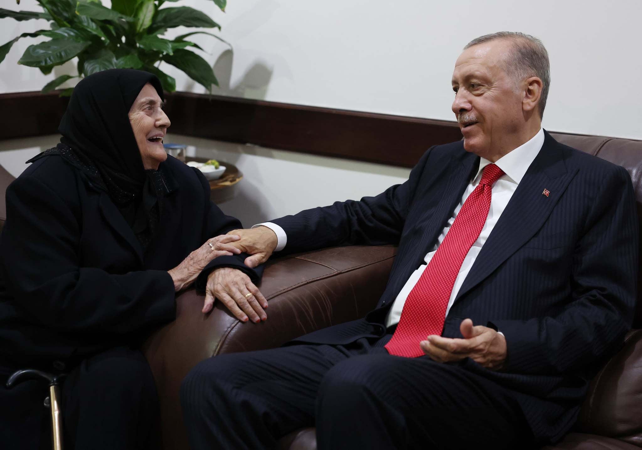 Erdoğan, valilik bahçesinde kendisini selamlayan 98 yaşındaki Hatice Çağlayan'ı da valiliğe davet etti ve burada bir süre kendisiyle sohbet etti.