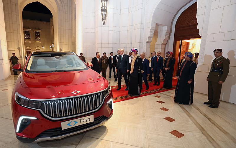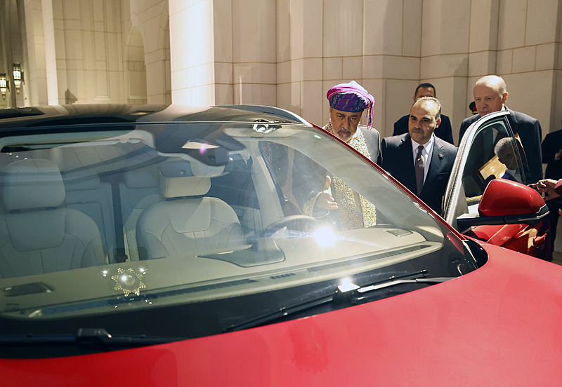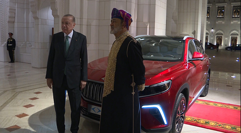 Başkan Erdoğan, Umman Sultanı Heysem bin Tarık bin Teymur El Said ile bir araya gelmesinin ardından kendisine "Anadolu Kırmızı" renkli Togg aracı hediye etti.
