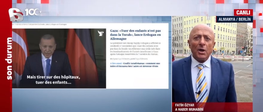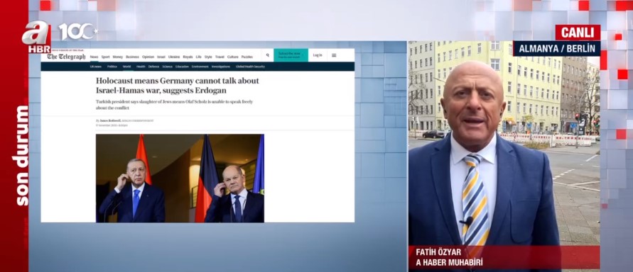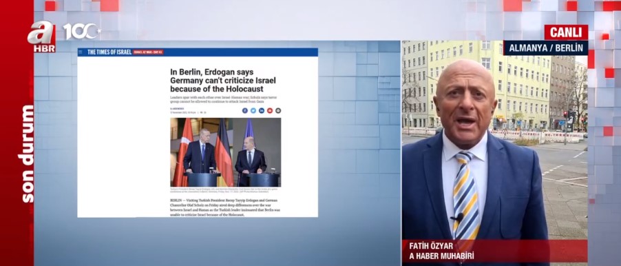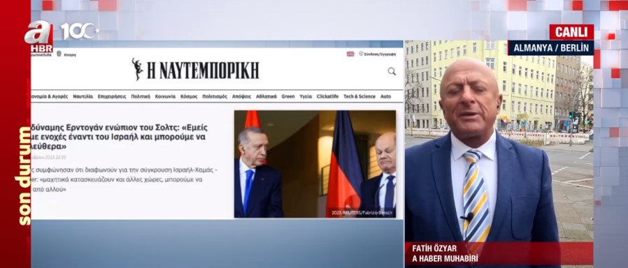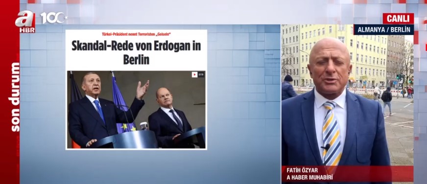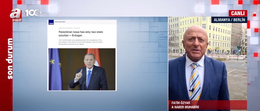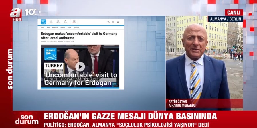 SON DAKİKA | Başkan Recep Tayyip Erdoğan, Almanya ziyaretinde terör devleti İsrail'in Gazze'de yaptığı soykırıma sert bir dille tepkisini göstererek, ABD ve Batı'nın bu vahşete sessiz kalmasını eleştirdi. Başkan Erdoğan'ın Berlin'den verdiği mesaj dünya basınında geniş yer buldu. Özellikle Alman basını Erdoğan'ın verdiği mesajı manşetine taşıdı. Basında yer alan ifadelere bakılınca Başkan Erdoğan'ın Almanların ayarı ile fena bir şekilde oynadığı gözler önüne serildi. Detayları A Haber Muhabiri Fatih Özyar aktardı.