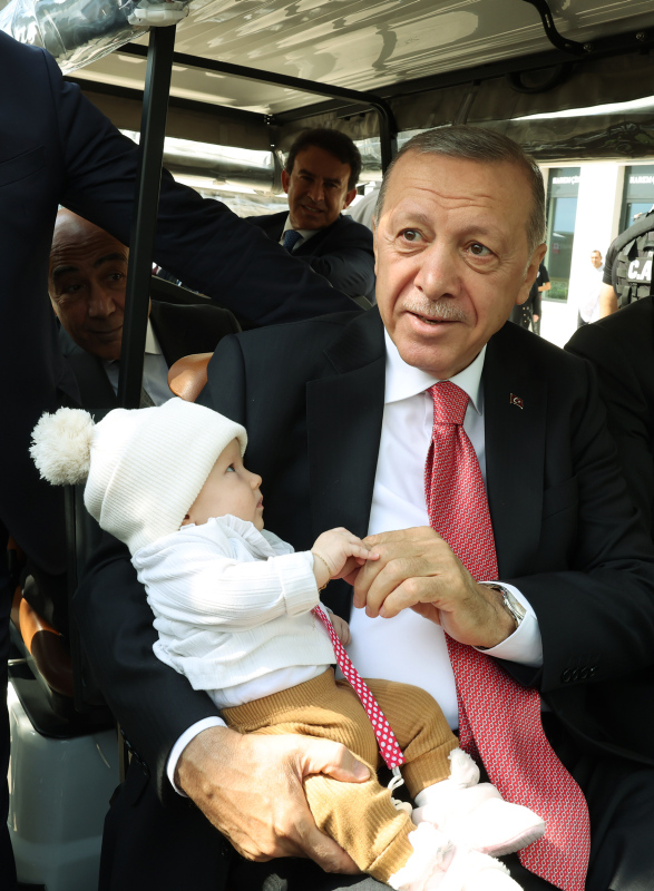 Ziyaret esnasında yoğun ilgiyle karşılaşan Başkan Erdoğan, vatandaşlar ve turistlerle hatıra fotoğrafı çektirip sohbet etti.