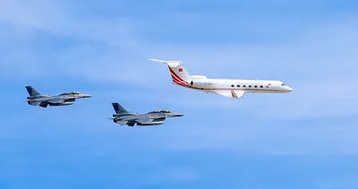 Başkan Erdoğan'ı taşıyan uçağa, Milli Savunma Bakanı Hulusi Akar da F-16 ile eşlik ederken, Erdoğan, Milli Savunma Bakanı Akar'ı selamladı.