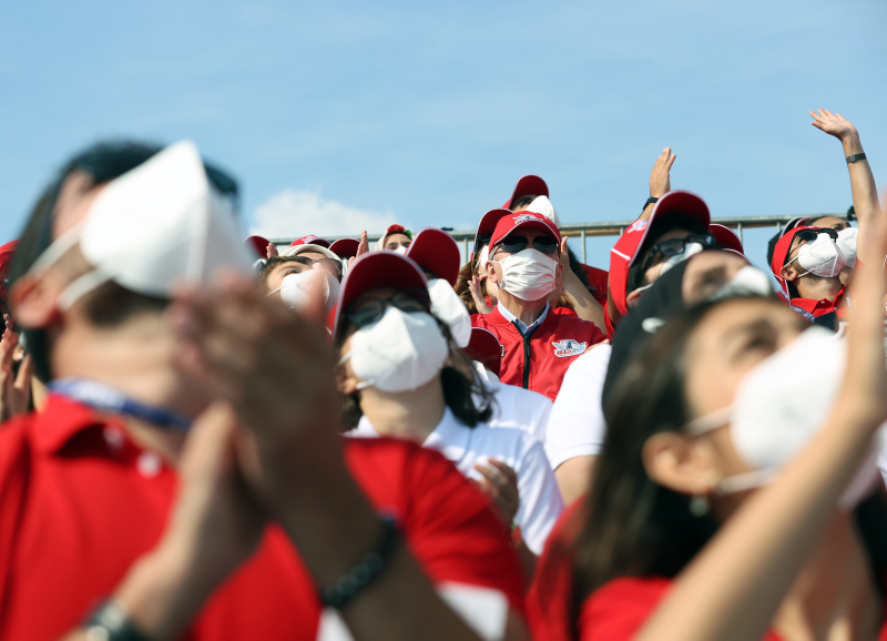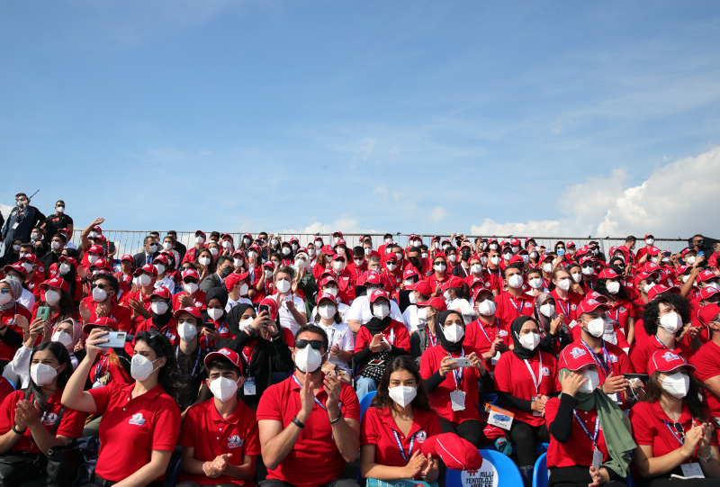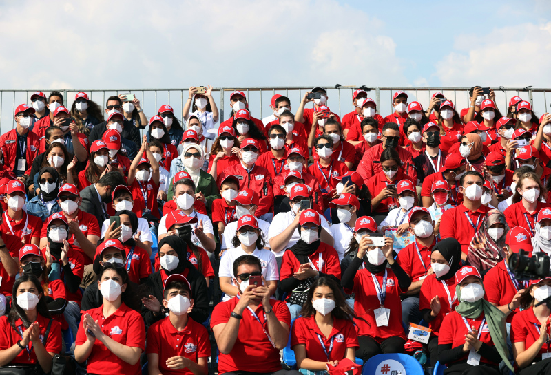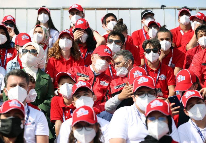 Erdoğan, Hürkuş ve Akıncı'nın da yer aldığı "Milli Kanatlar Gösterisi"ni izlemek üzere tribüne geçerken vatandaşları da selamladı.