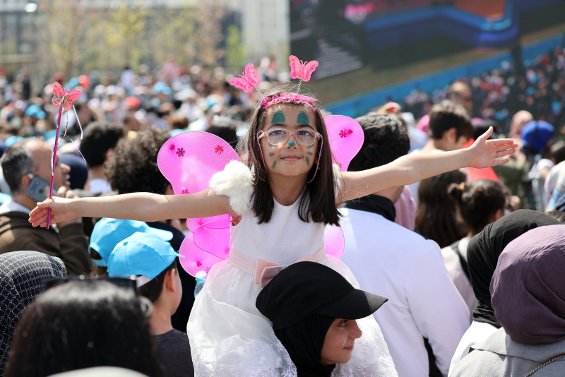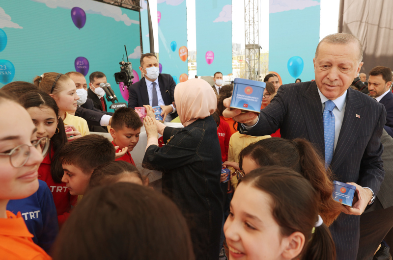 Başkan Erdoğan, Başakşehir Millet Bahçesi'nde düzenlenen 23 Nisan TRT Çocuk Şenliği'nde yaptığı konuşmada, "Evlatlarımızın her birinin gözlerinden öpüyorum. Buradaki evlatlarımızın nezdinde tüm milletimizin tüm çocukların 23 Nisan Mili Egemenlik ve Çocuk Bayramı'nı tebrik ediyorum" dedi.