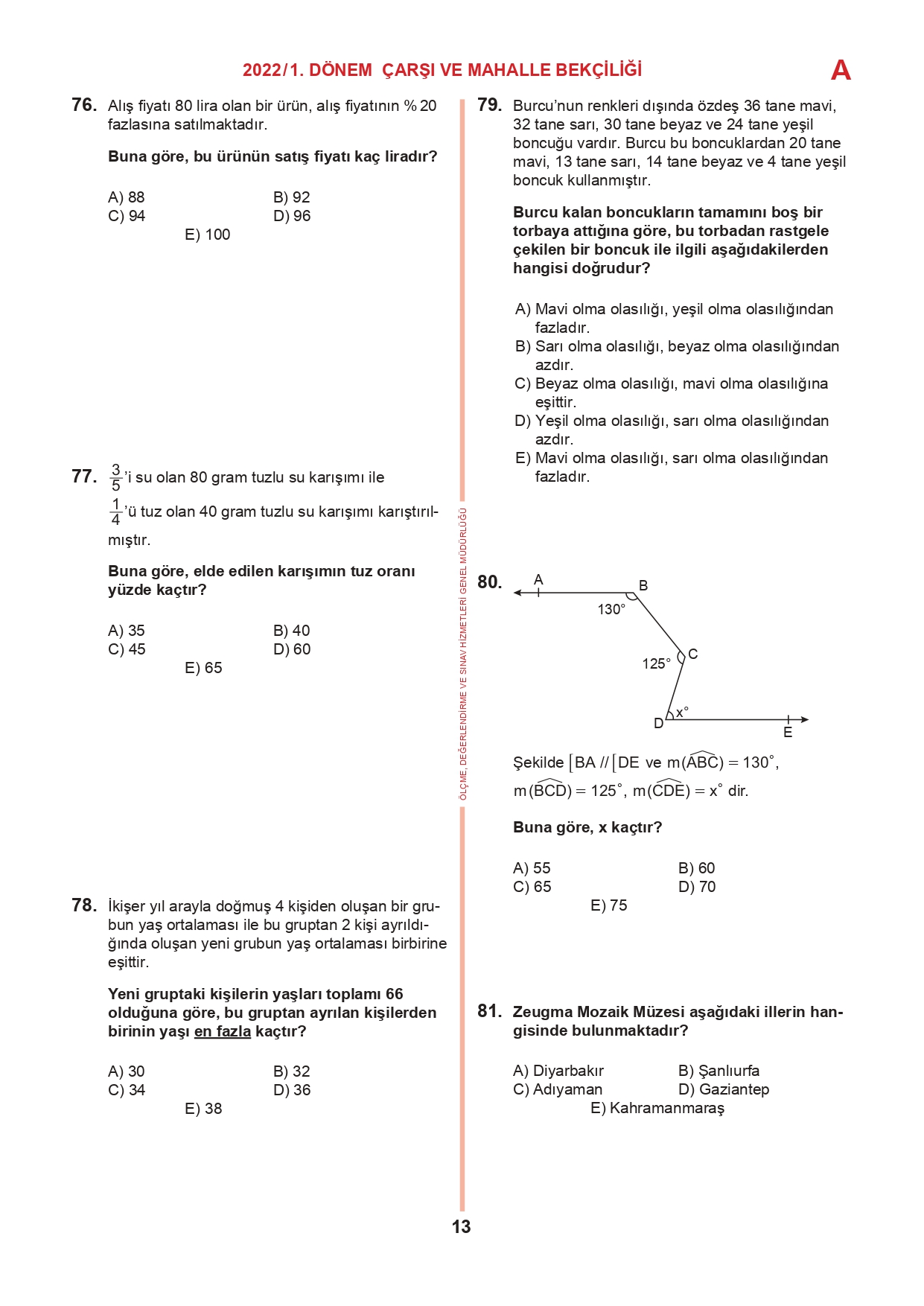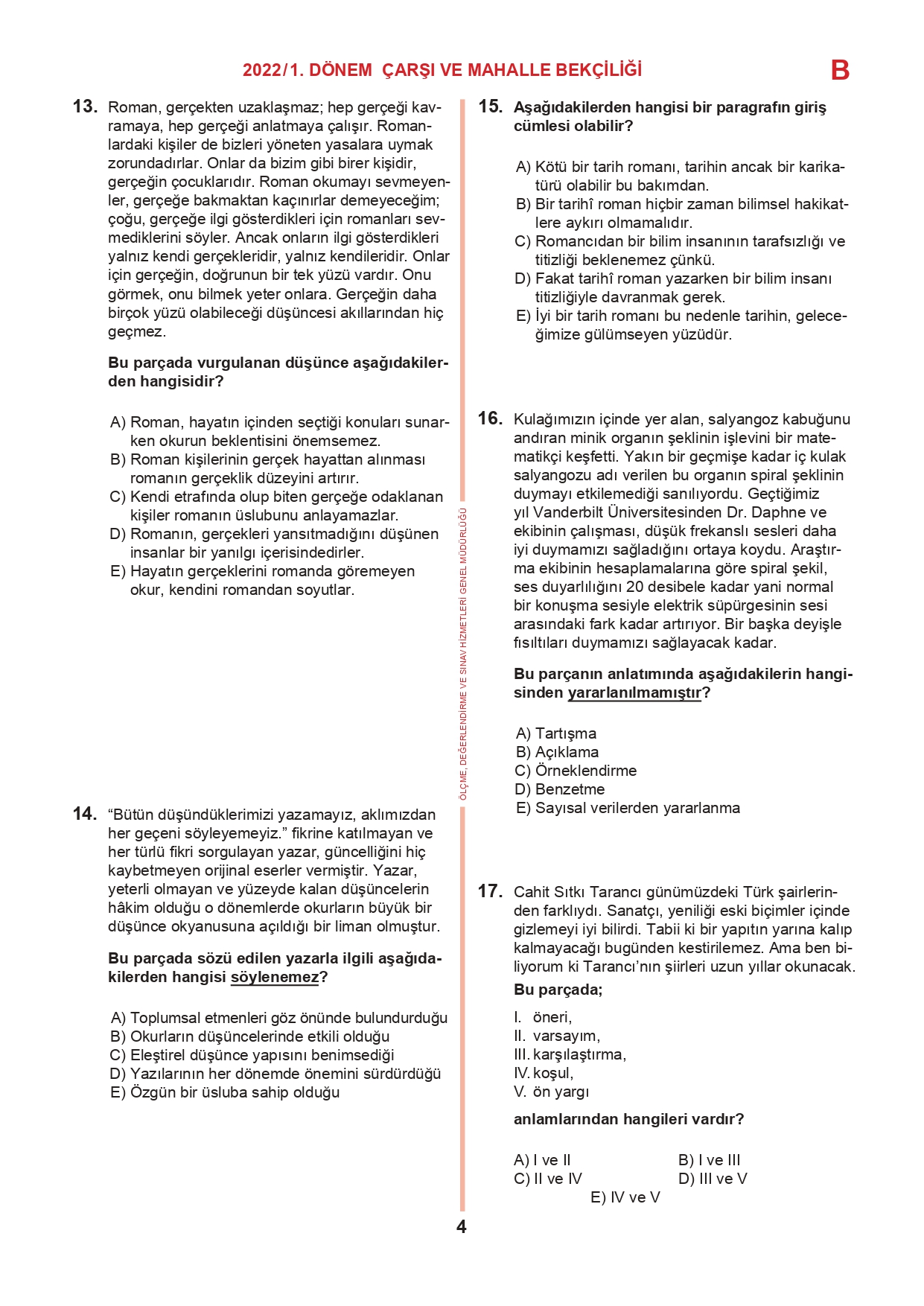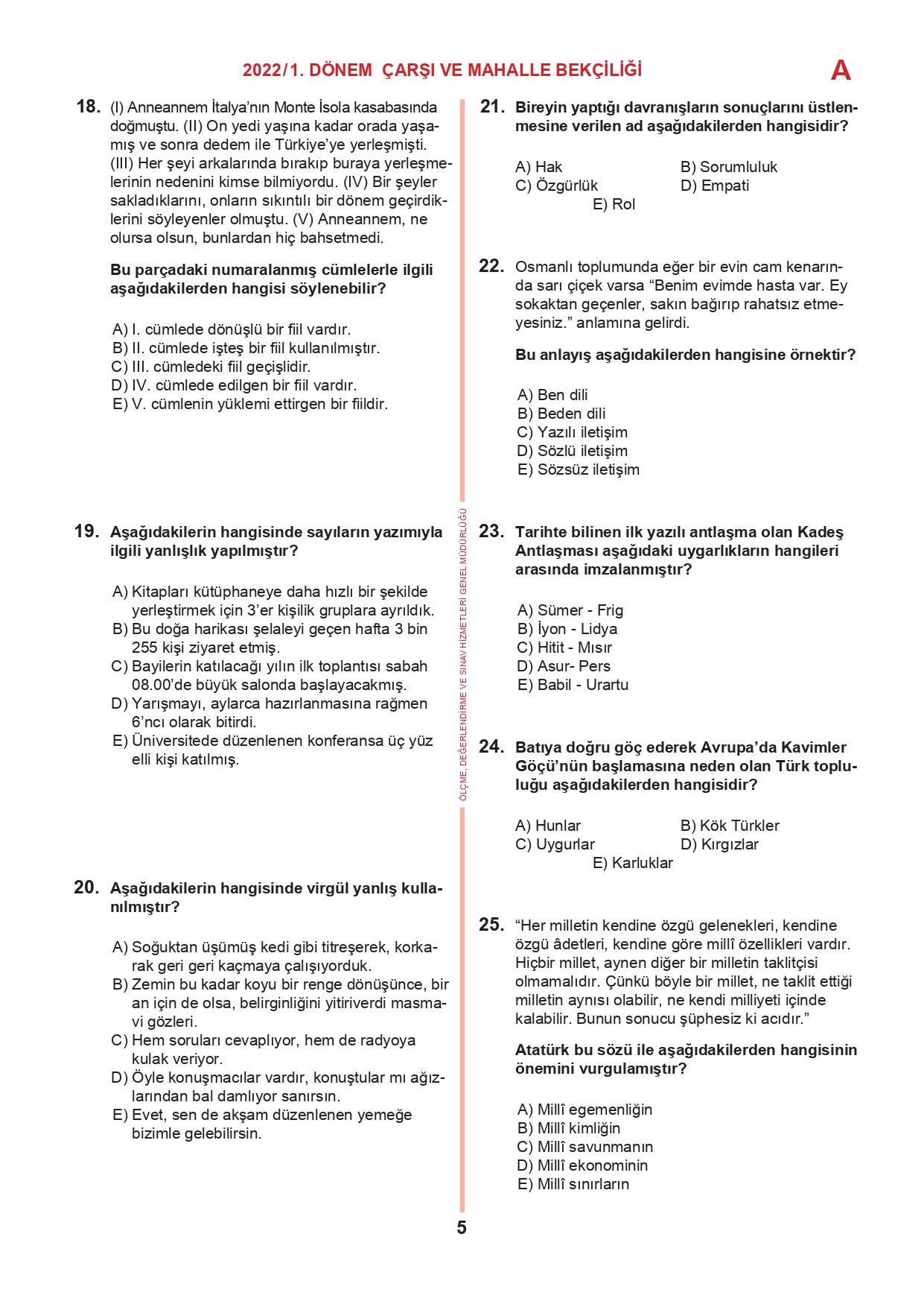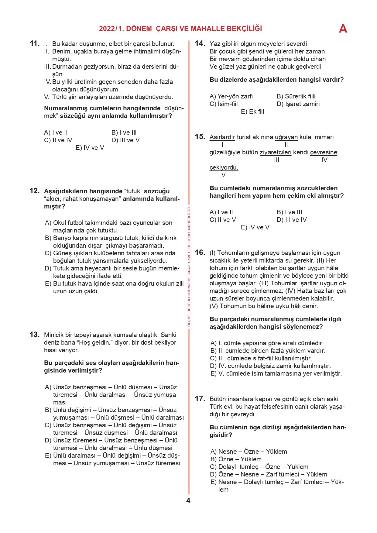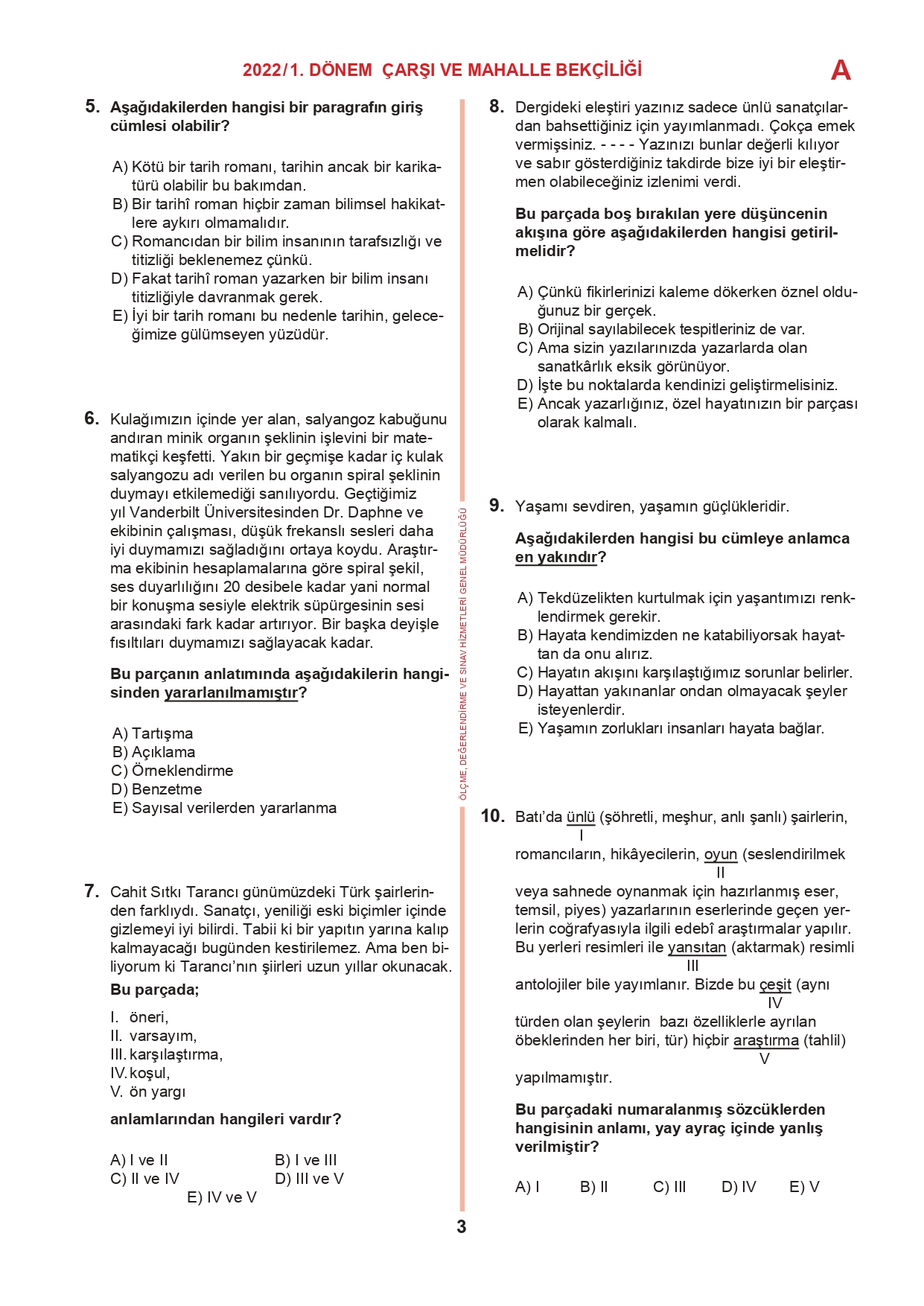 17 Temmuz 2022 tarihinde yapılan 2022/1. Dönem Çarşı ve Mahalle Bekçiliği Yazılı Sınavının soru kitapçıkları ve cevap anahtarları, Milli Eğitim Bakanlığı'nın Ölçme, Değerlendirme ve Sınav Hizmetleri Genel Müdürlüğü resmi internet adresi üzerinden erişime açıldı.