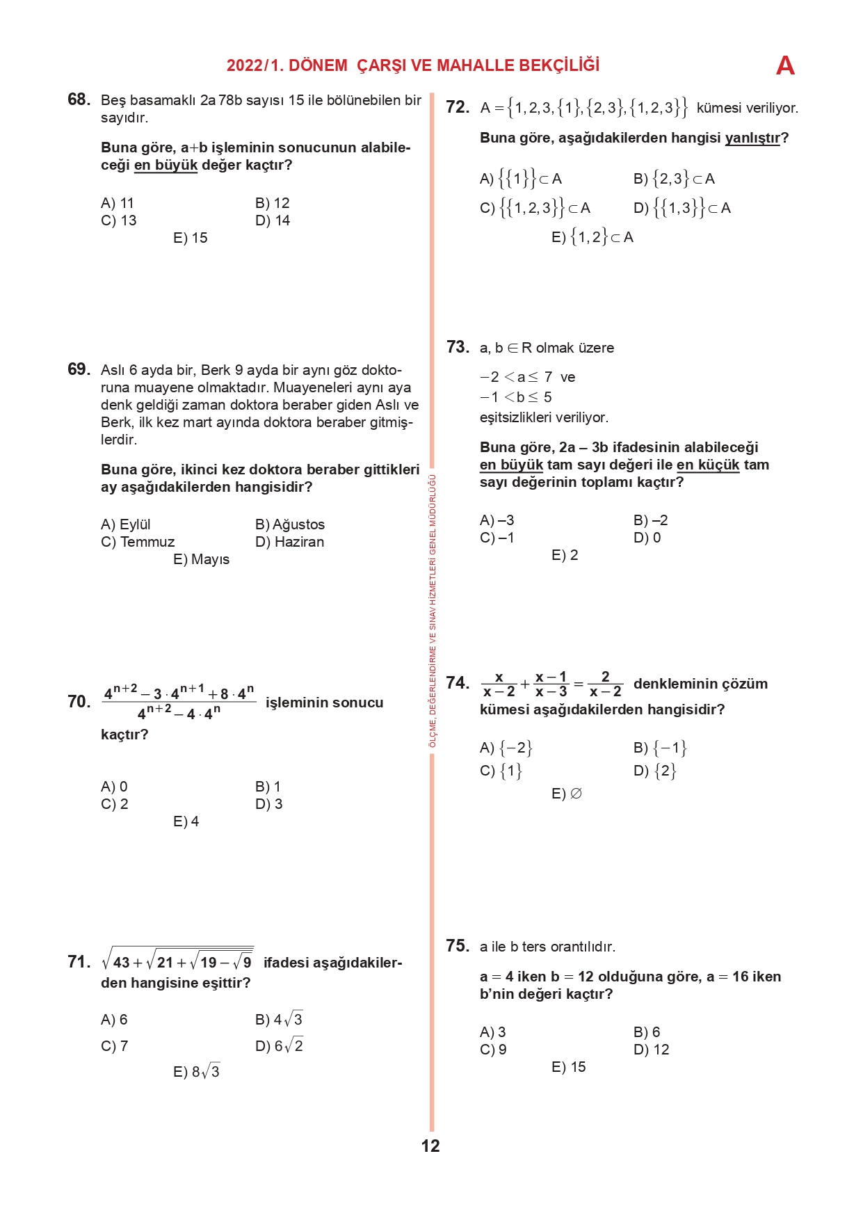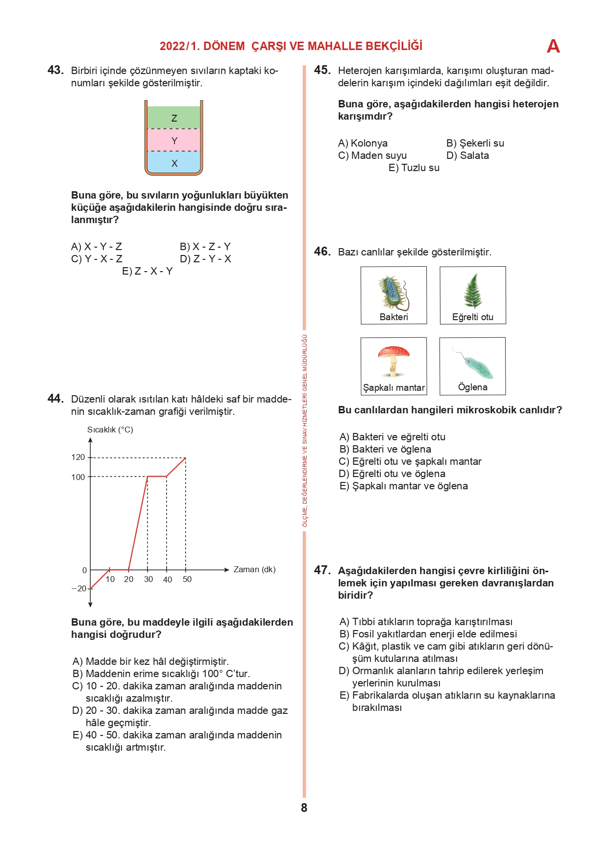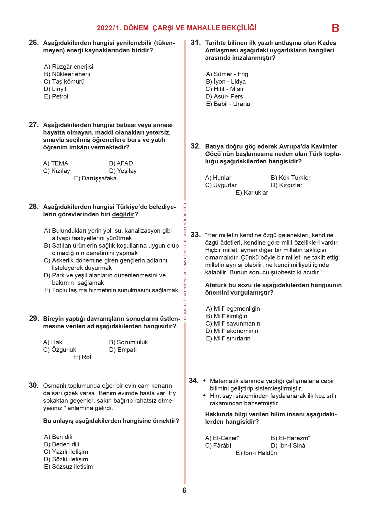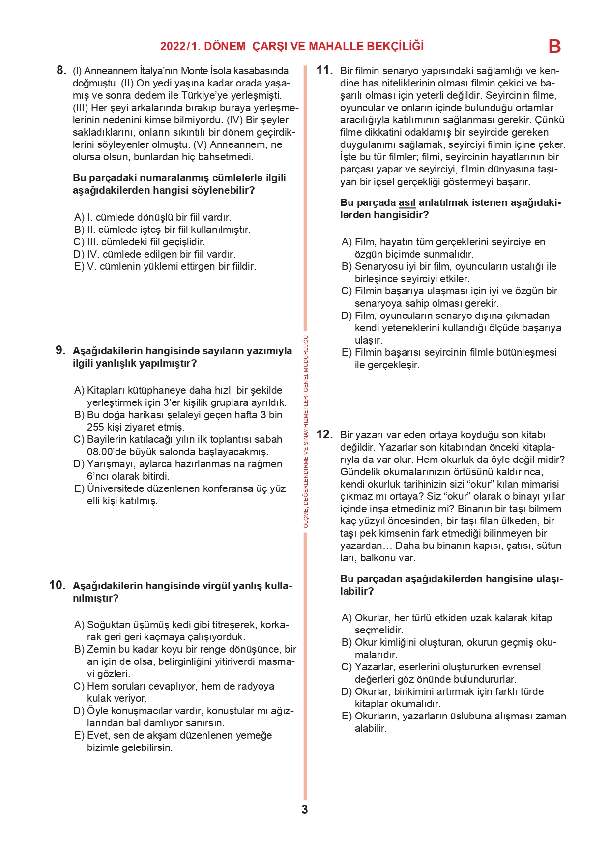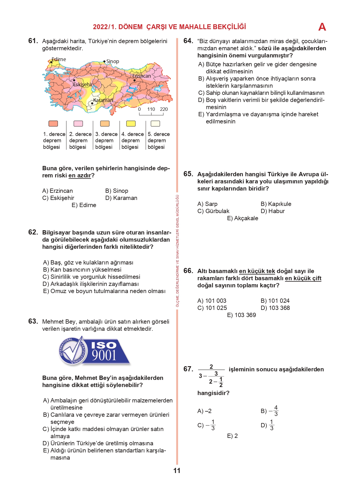 17 Temmuz 2022 tarihinde yapılan 2022/1. Dönem Çarşı ve Mahalle Bekçiliği Yazılı Sınavının soru kitapçıkları ve cevap anahtarları, Milli Eğitim Bakanlığı'nın Ölçme, Değerlendirme ve Sınav Hizmetleri Genel Müdürlüğü resmi internet adresi üzerinden erişime açıldı.