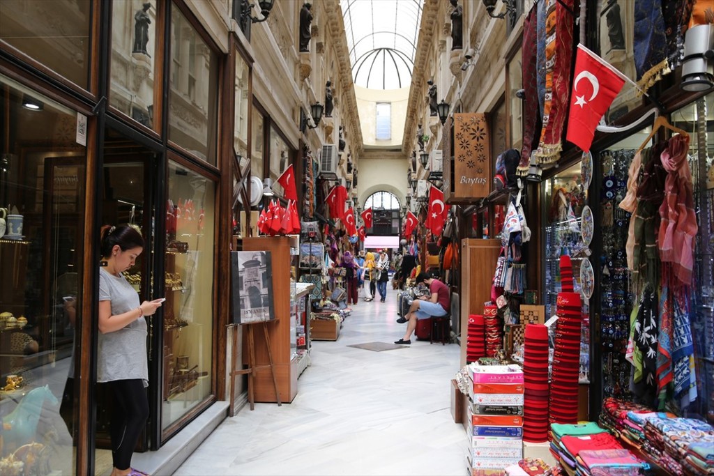- Türk bayraklarıyla süslü Aynalı (Avrupa) Pasajı