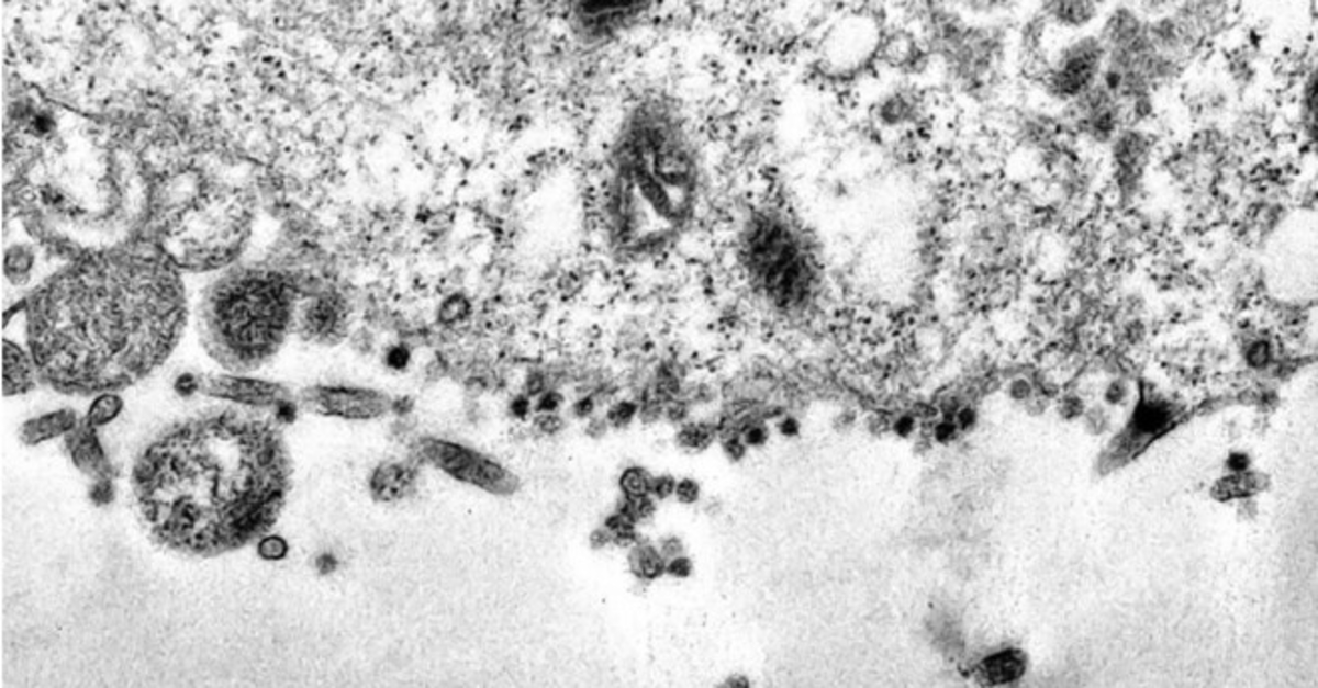 Elde edilen görüntüde, Covid-19 virüsünün parçacıkları olan siyah noktalar, genetikten sorumlu olan bir sitoplazmayı enfekte etmeye çalışıyor. İşte tam olarak corona virüsün bir hücreye bulaştığı an.