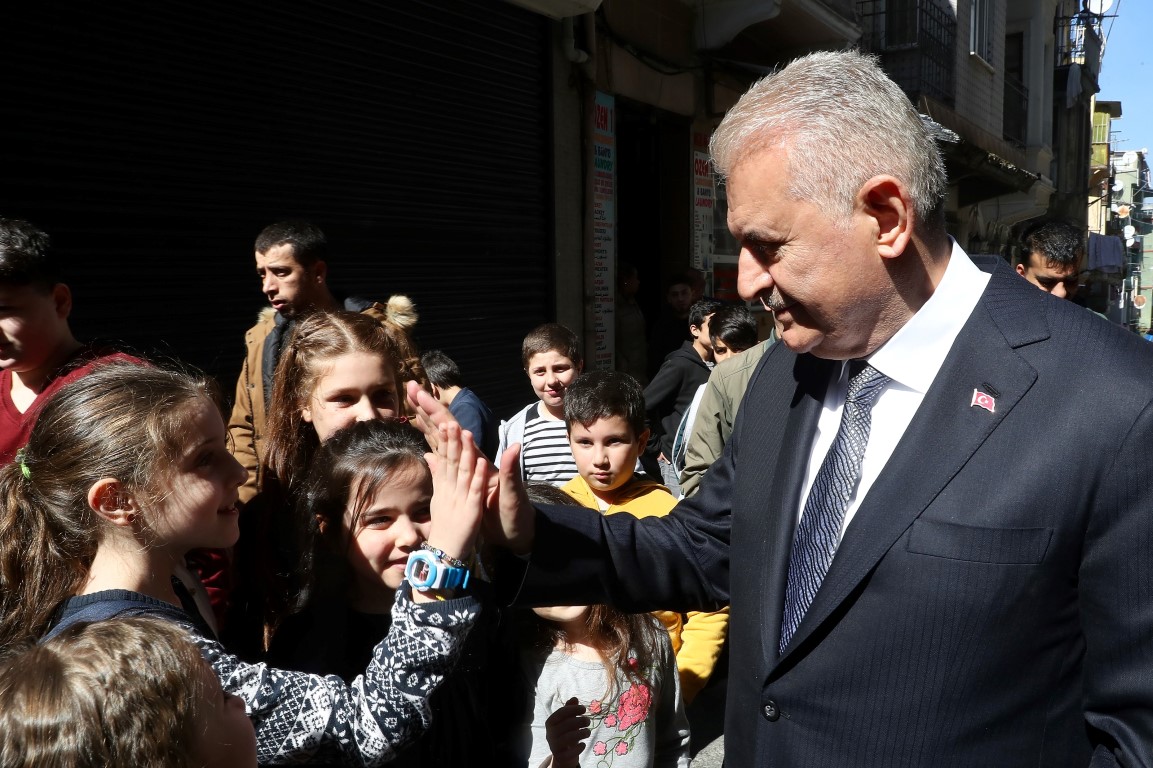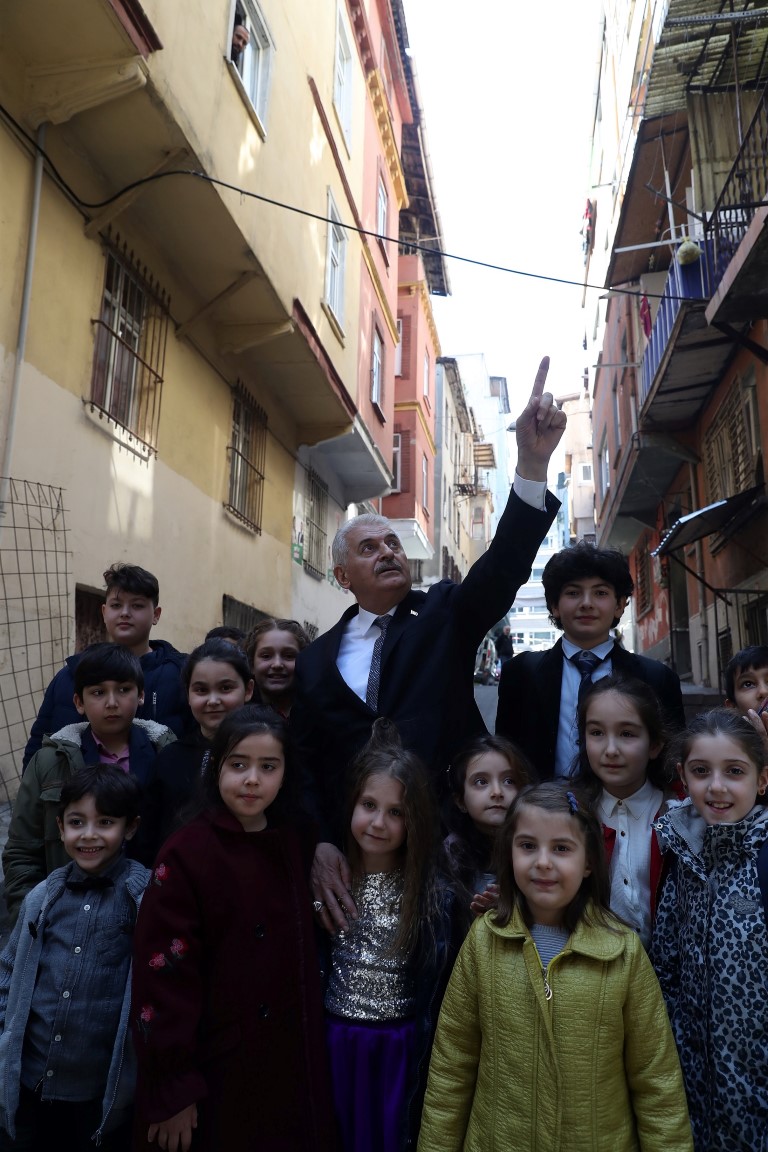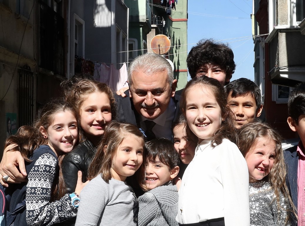 Yıldırım daha sonra sokakta koşarak yanına gelen çocuklara sarıldı ve onlarla yakından ilgilendi, fotoğraf çektirdi. Çocuklarla da bir müddet sokakta yürüyen Yıldırım, Peşkirci Sokağı sakinleri ve esnaf ile de selamlaştı.
