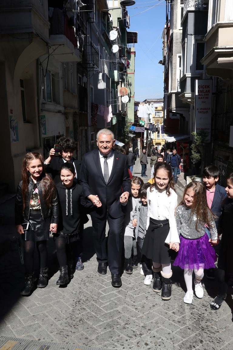 AK Parti İstanbul Büyükşehir Belediye Başkan adayı Binali Yıldırım, Beyoğlu programında, büyüdüğü sokağı da ziyaret etti.