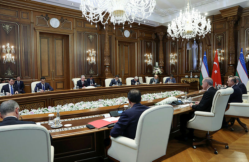 Erdoğan, 15 Eylül'de ulaştığı Semerkant'ta ilk olarak Azerbaycan Cumhurbaşkanı İlham Aliyev ve Pakistan Başbakanı Şahbaz Şerif'le görüştü.