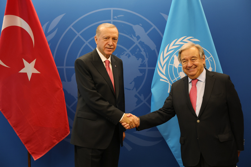 Erdoğan, BM Genel Kurulu'na hitabının ardından BM Genel Merkezi'nde, BM Genel Sekreteri Antonio Guterres, Finlandiya Cumhurbaşkanı Sauli Niinistö ve Kırgızistan Cumhurbaşkanı Sadır Caparov ve İspanya Başbakanı Pedro Sanchez ile görüştü.