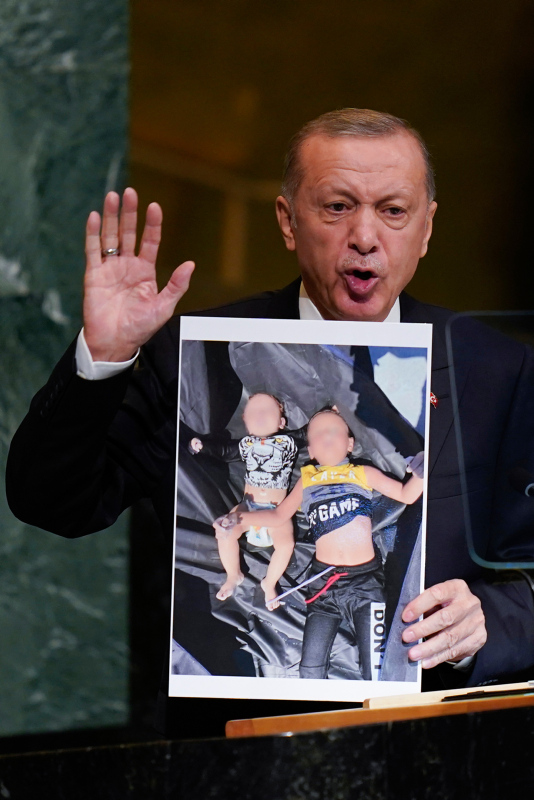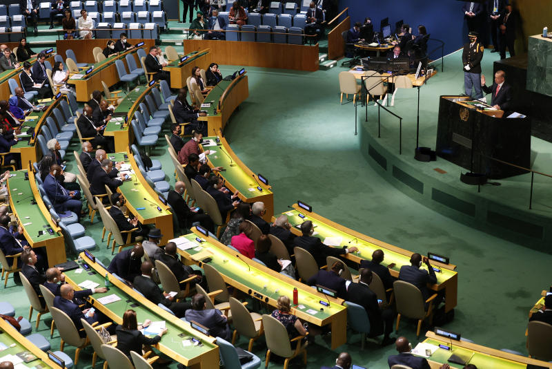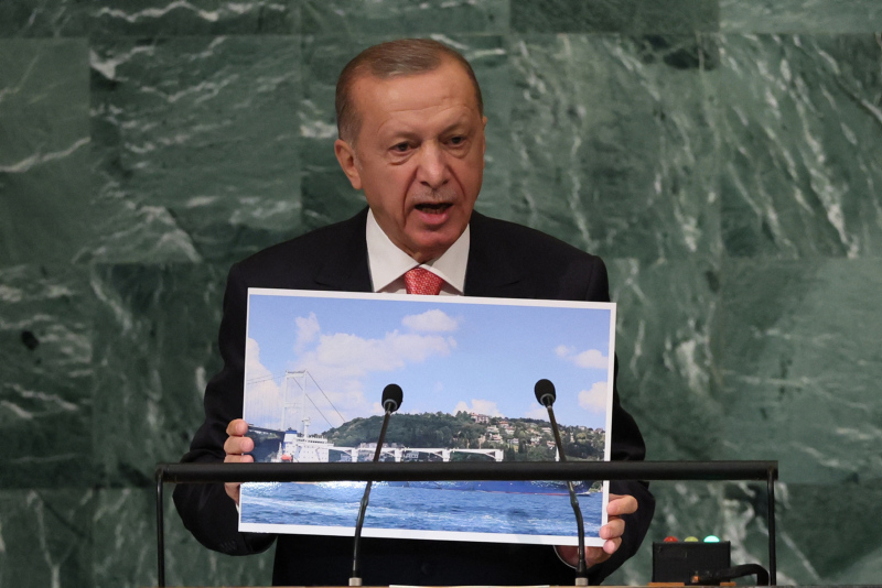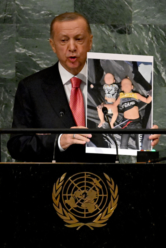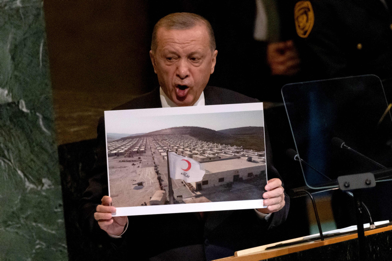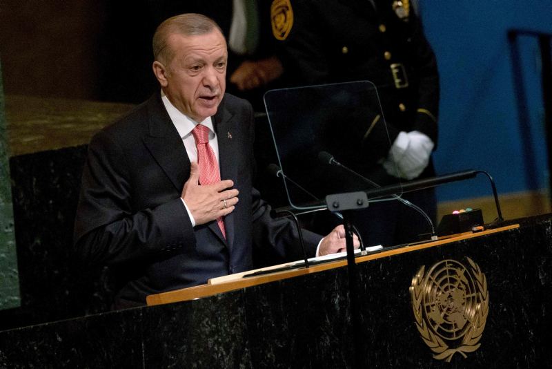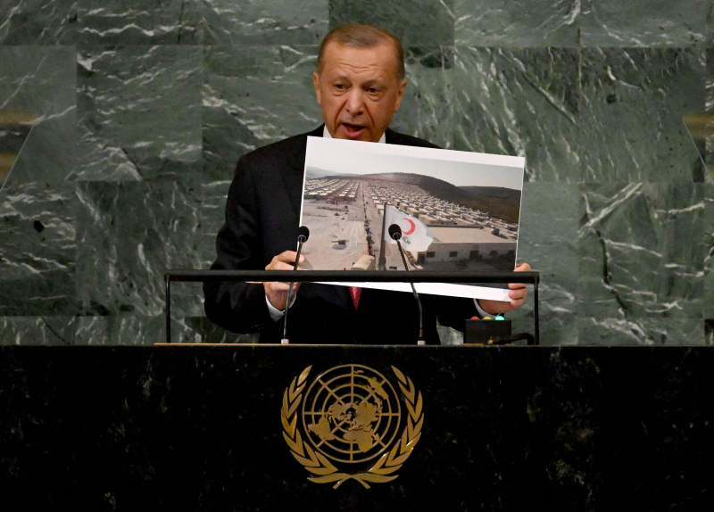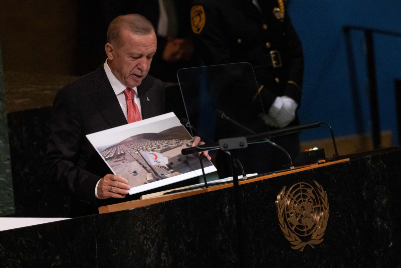 Başkan Recep Tayyip Erdoğan BM Genel Kurulu'nda dünyaya seslendi. Konuşmasına ekonomi ile başlayan Başkan Erdoğan enflasyon baskısının dünya çapında etkilerinin olduğununun altını çizdi. Diğer yandan Başkan Erdoğan Rusya Ukrayna savaşının diplomatik bir yolla çözülmesi gerektiğini vurguladı. Yunanistan'ın Ege'deki provokatif tavrına da değinen Başkan Erdoğan "Yunanistan hukuksuz, pervasız geri itmeleriyle Ege'yi mülteci mezarlığına çevirmektedir" ifadelerini kullandı. İşte detaylar....
