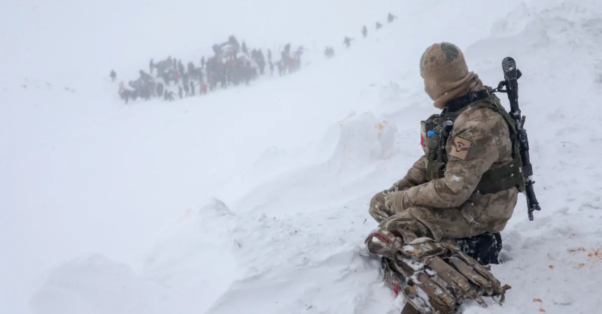 Van'da yaşanan çığ felaketinde görüntülenen bu kare tüm Türkiye'nin yüreklerini dağladı. İlk çığ felaketinde 5 kişi hayatını kaybetti. Kaybolan 2 kişiyi arayan ekiplerin üzerine de çığ düştü. Faciada hayatını kaybedenlerin sayısı 33'e yükselirken, kurtarma çalışmaları devam ederken bir askerin görüntüleri yürekleri yaktı. İşte Türkiye'nin yüreklerini dağlayan görüntüler...