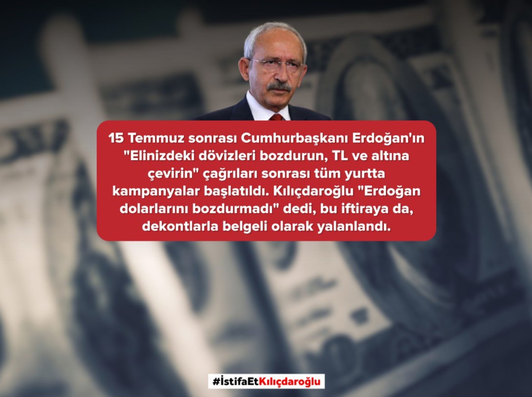 Cumhurbaşkanı Recep Tayyip Erdoğan ile ilgili asılsız iddialarını ispatlayamayan CHP Genel Başkanı Kılıçdaroğlu için sosyal medyada #istifaetKılıçdaroğlu etiketiyle tepki gösterildi. Kısa sürede TT olan Kılıçdaroğlu'nun yıllardır dönem dönem ortaya attığı ve ispat edemediği iddialar da gündeme getirildi. İşte Kılıçdaroğlu'nun daha önce de iddia edip ispatlayamadıkları...