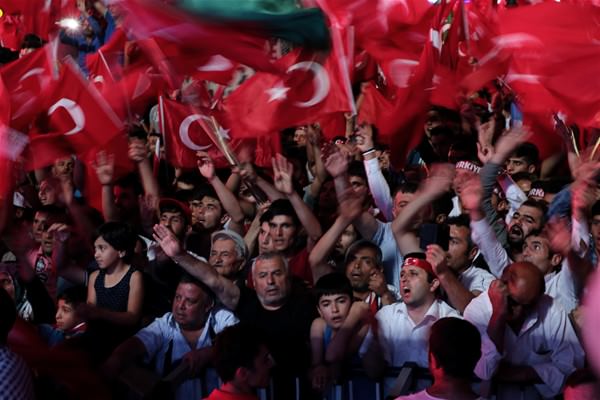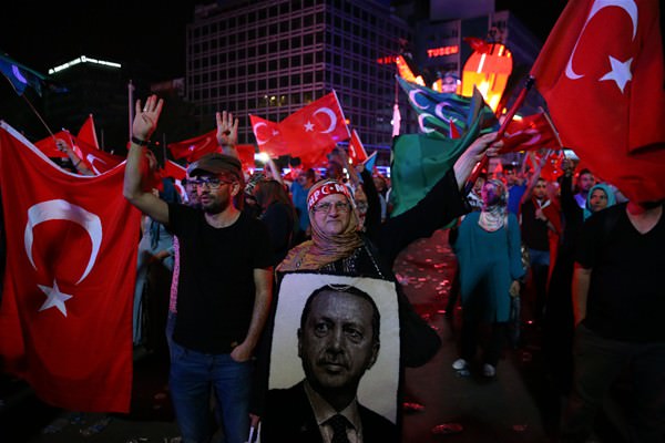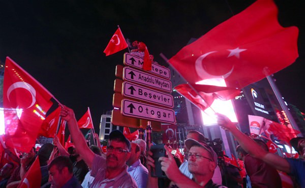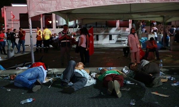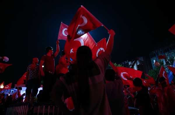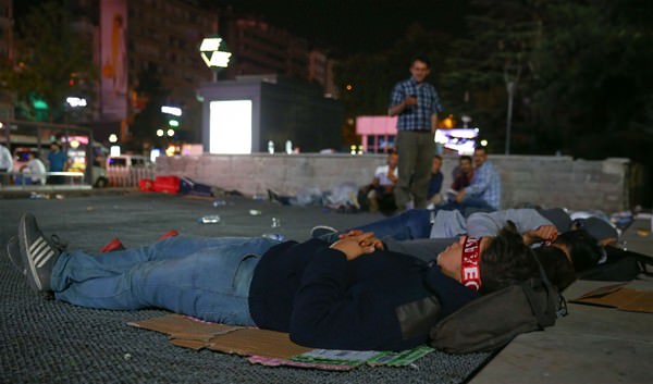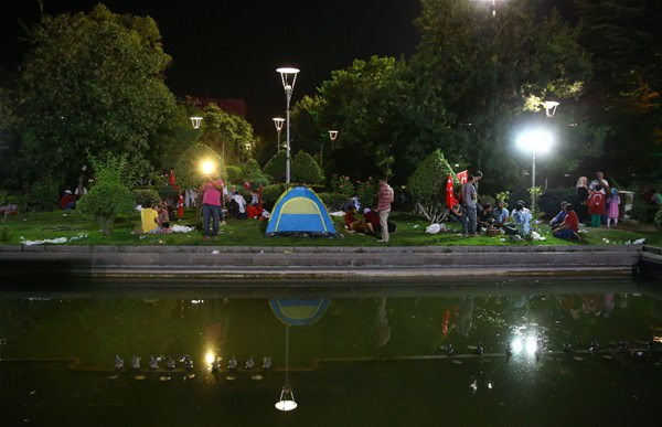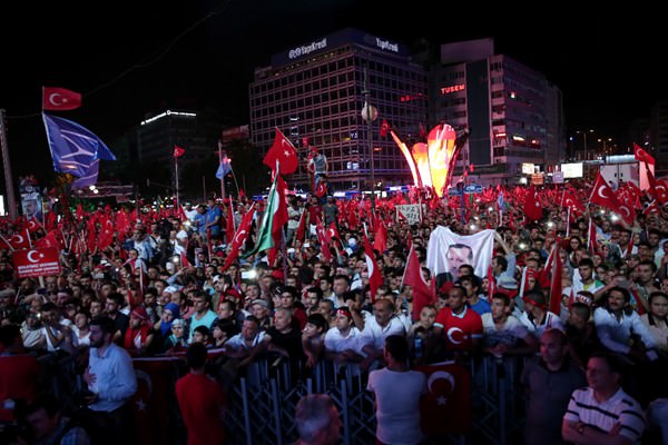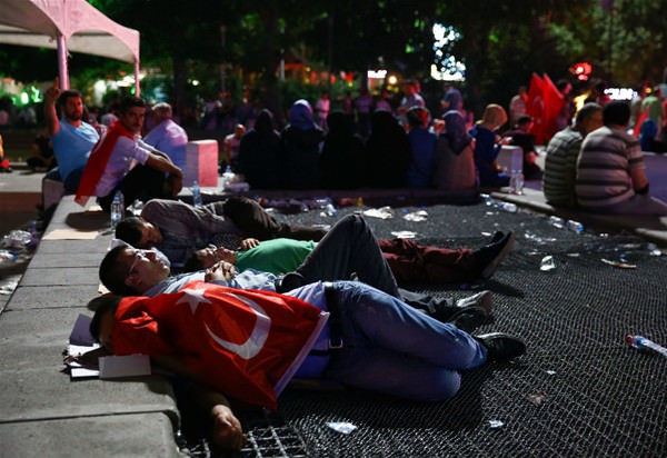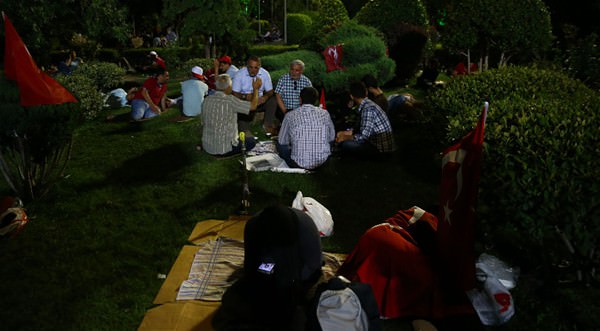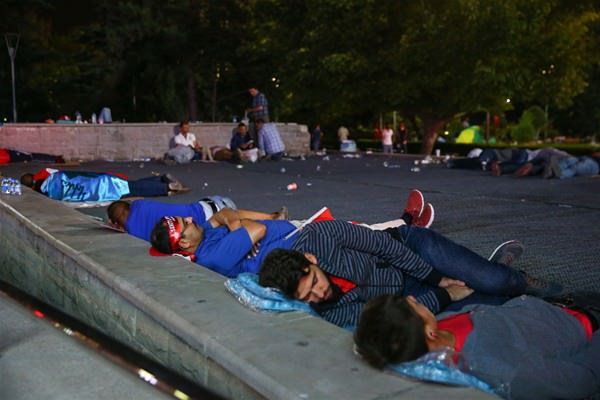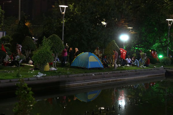 Ankara'da Kızılay Meydanı'nda toplanan vatandaşlar, FETÖ'nün darbe girişimini protesto etmeye devam etti. Akşam saatlerinde meydanda toplana vatandaşlar, meydanda sabahladı.