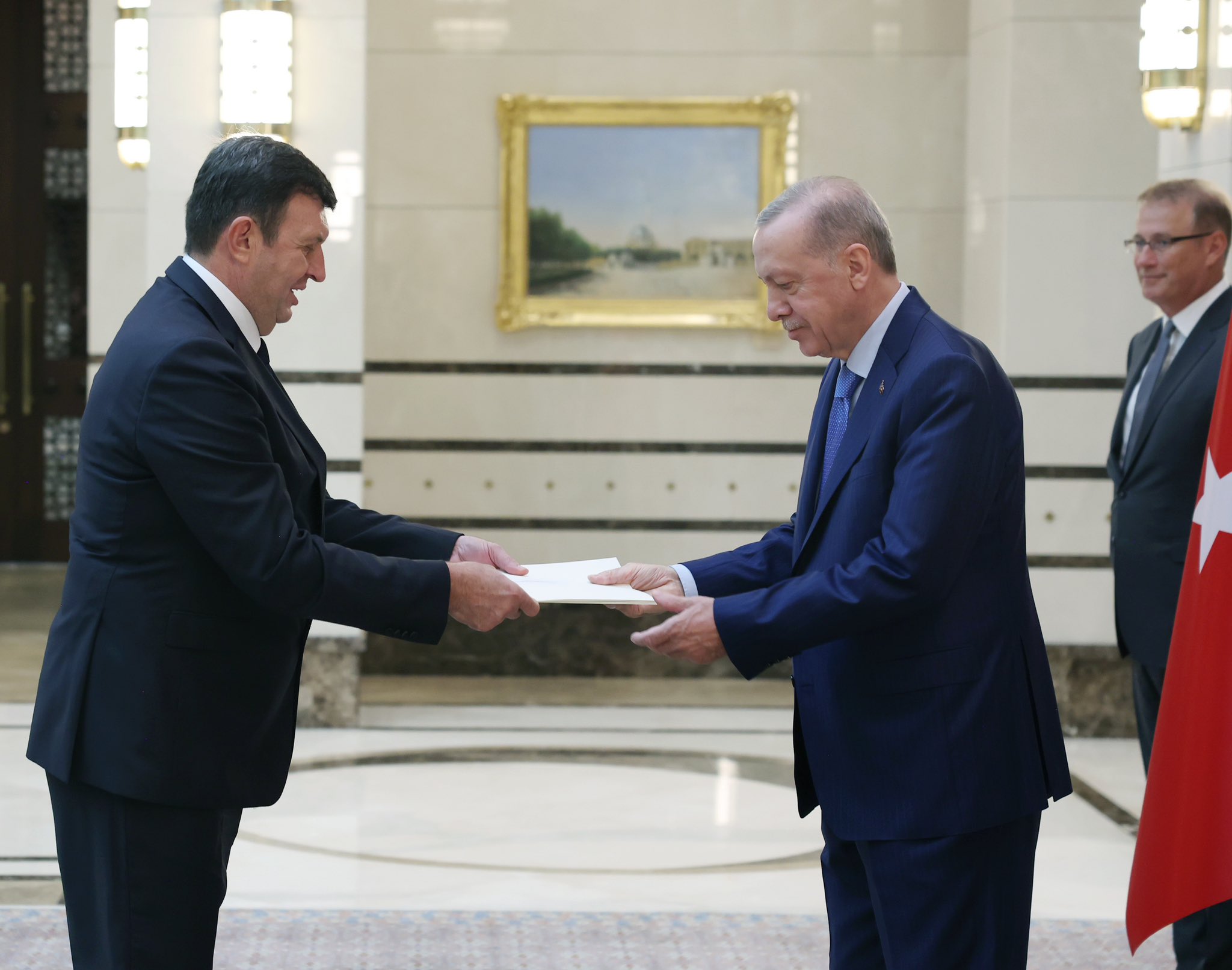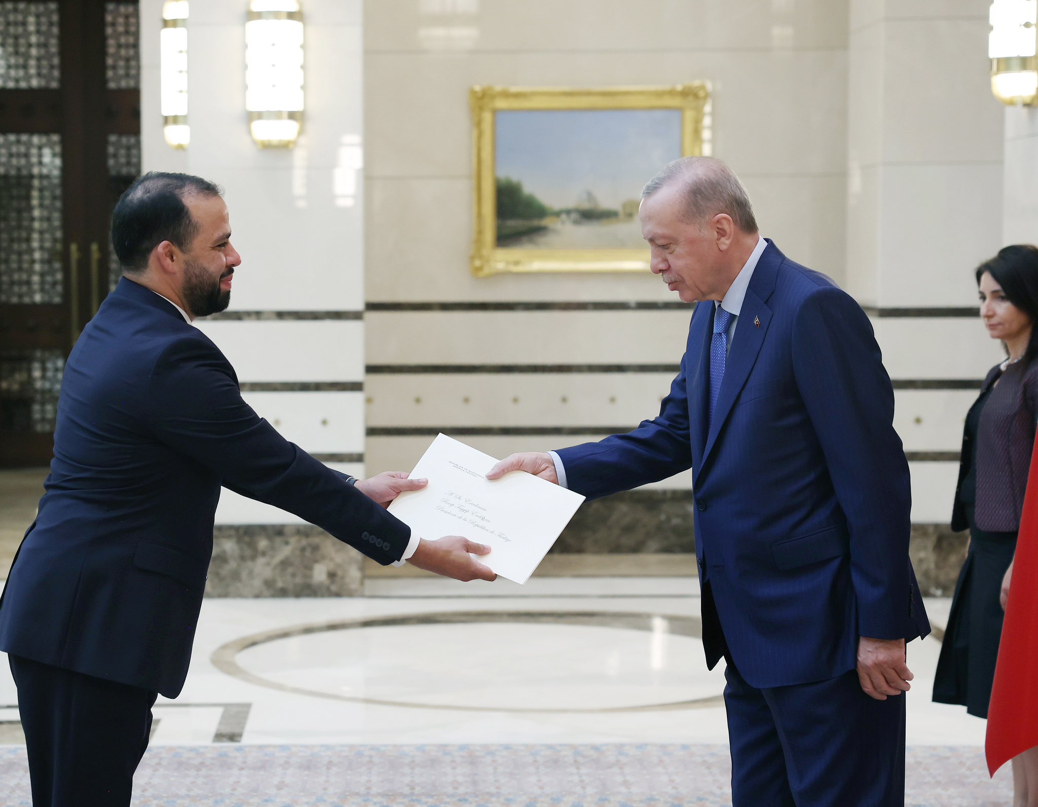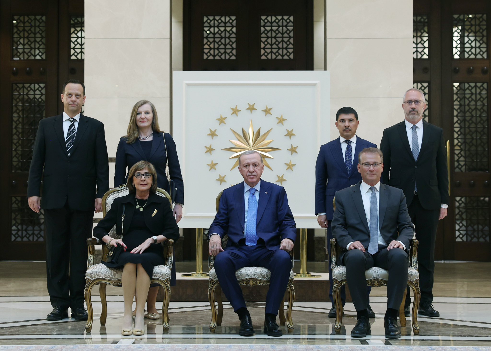 Başkan Recep Tayyip Erdoğan, Bahreyn Büyükelçisi Bessam Ahmed Ali Marzuk, Guatemala Büyükelçisi Eduardo Enrique Hernandez Recinos, Bosna Hersek Büyükelçisi Mirsada Colakovic ve Sırbistan Büyükelçisi Aca Jovanovic'i kabul etti. Başkan Erdoğan kendisine güven mektuplarını sunan büyükelçiler ile hatıra fotoğrafı çektirdi.
