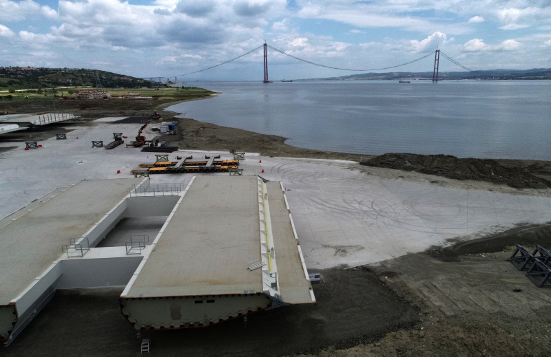Çanakkale'nin Lapseki ve Gelibolu ilçeleri arasında inşası süren "1915 Çanakkale Köprüsü'nde" araçların geçeceği yol için tabliye montajına hazırlık yapılıyor. "Çanakkale Boğazı'nın gerdanlığı" olarak nitelendirilen projenin en önemli aşamalarından biri olan yol için, 87 tabliye bloğunun montajı, haziran ayının ortalarından itibaren 106 metrelik "Asian Hercules-III" isimli yüzer vinçle gerçekleştirilecek. Tabliyeler yerine yerleştirildikten sonra görsel eksikliklerin tamamlanması ve testlerin yapılmasıyla dev yapı açılışa hazır hale getirilecek.