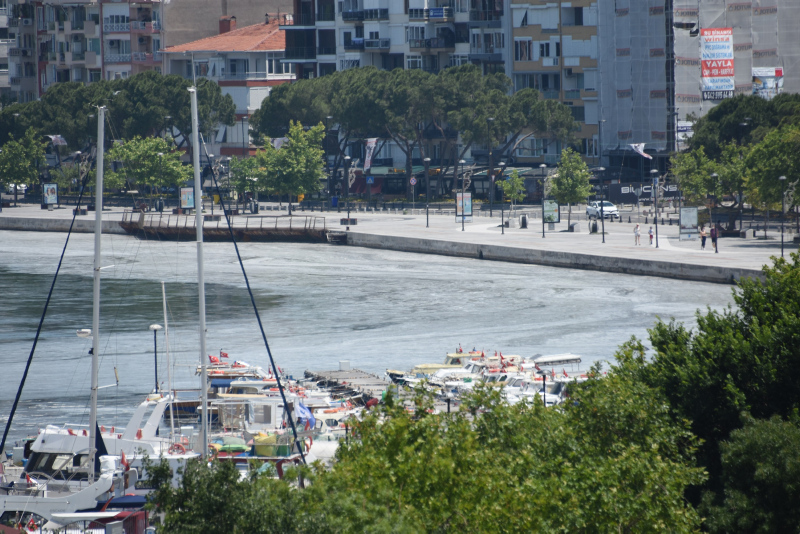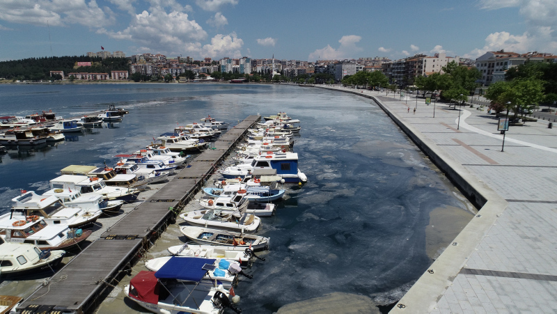 Kentte etkili olan rüzgarla yön değiştiren müsilaj, il merkezi ve Lapseki ilçesi kıyılarında yoğunlaştı.