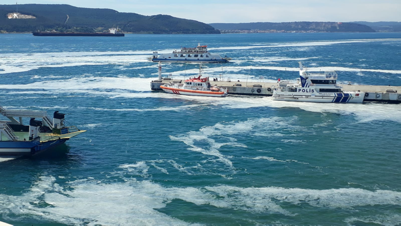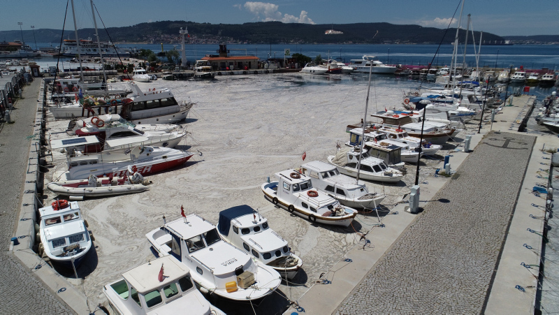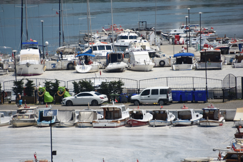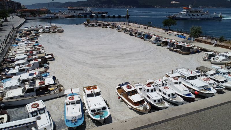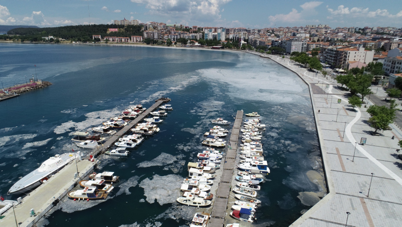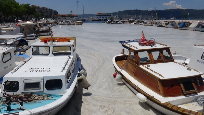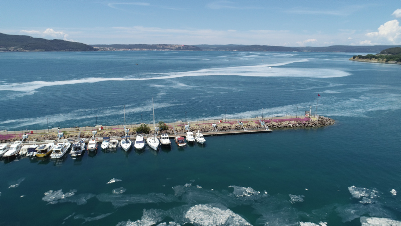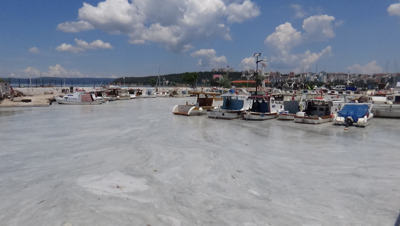 Bazı bölgelerde su yüzeyinde beton görünümü oluşturan müsilajın deniz taşıtlarının çevrelerini sardığı, Marmara Denizi'nin kuzeyi ile Ege'ye doğru yayıldığı gözlendi.
