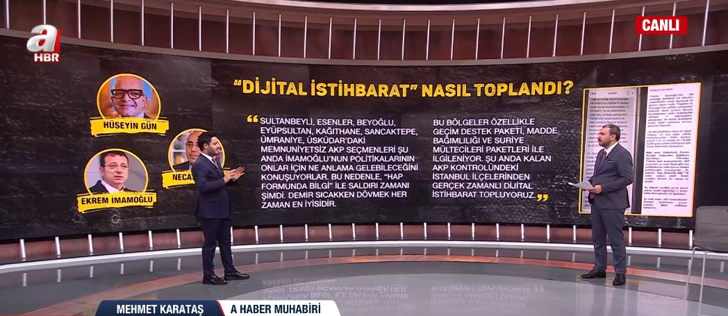 Şimdi geriye dönüp bakıldığında özellikle dijital materyaller incelendiğinde aslında Hüseyin Gün'ün burada sadece bir casusluk değil özellikle de 2019'da gerçekleşen seçim sürecinde seçim kampanyasını yürüten Necati Özkan'la birlikte birçok usulsüzlüğe başvurdukları ve özellikle de bu seçim sürecinde şunu söyleyebiliriz. Yani tanımla, zehirle, zayıflat ve yok et. Şimdi bir taraftan Ekrem İmamoğlu'nu usulsüz ve resmi olmayan yollarla parlatma politikası izlerken bir taraftan da rakiplerini aynı şekilde usulsüz bir şekilde yıpratma politikasına gidiyor.