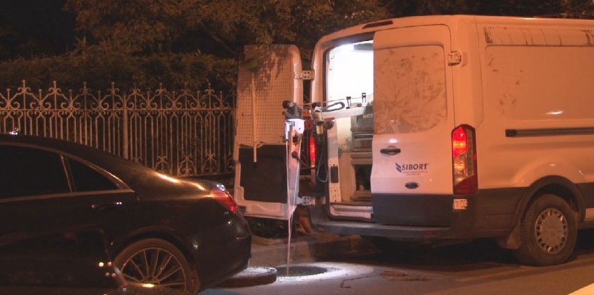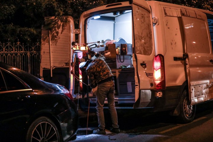 Levent'te başkonsolosluğun bulunduğu Konaklar Mahallesi Çamlık Caddesi Akasyalı Sokağı'na akşam saatlerinde kanalizasyon görüntüleme sisteminin yer aldığı minibüs geldi.