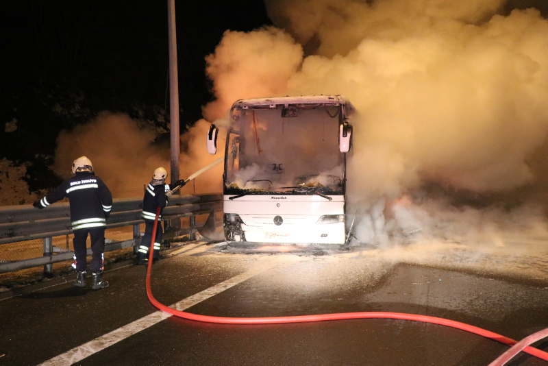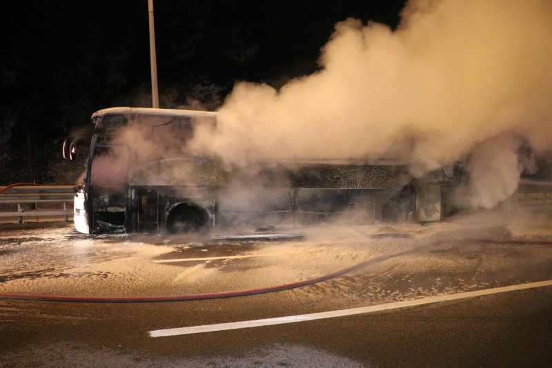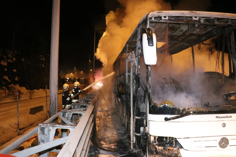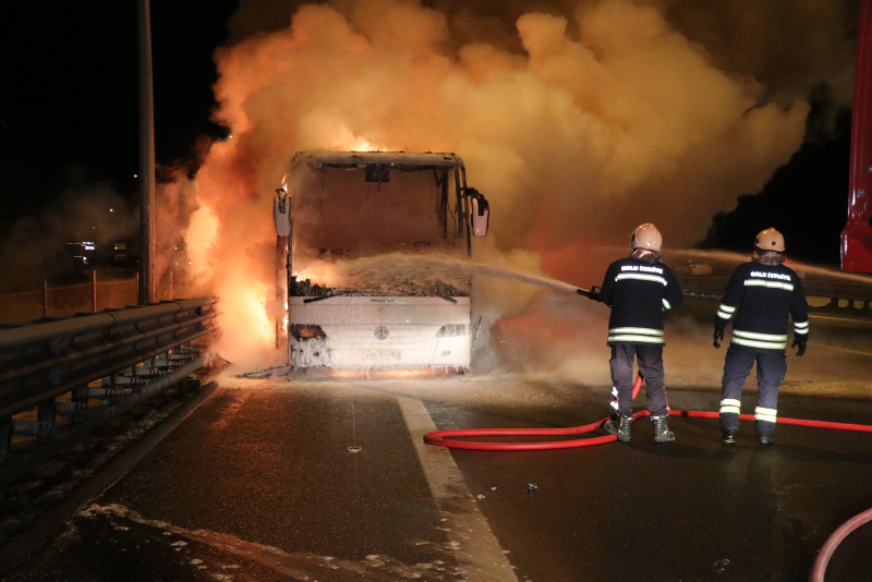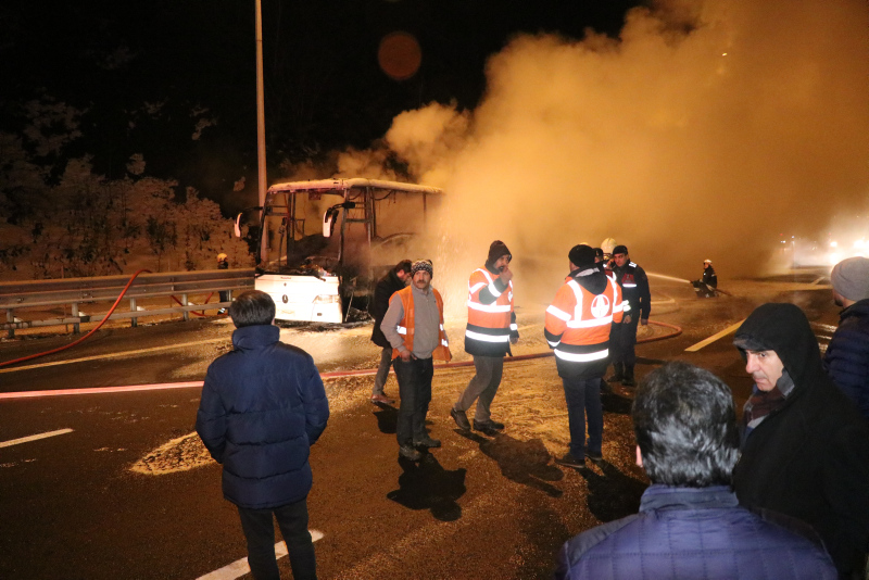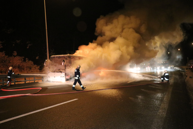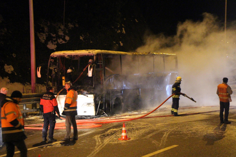 Bolu'da cenazeye giden yolcuları taşıyan yolcu otobüsü, TEM Otoyolu Bolu Dağı Tüneli girişinde seyir halindeyken yandı.