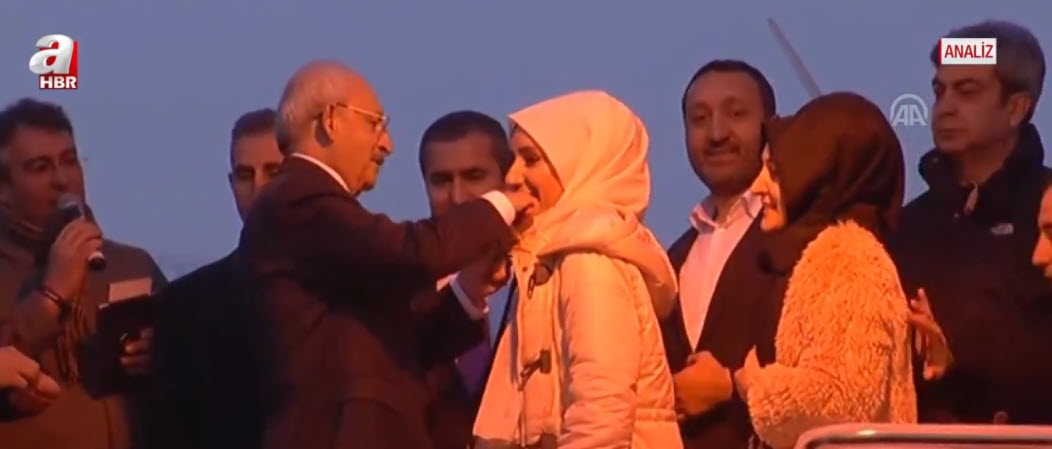 Görüntü 23 Haziran'da İstanbul Ataköy'de kayda geçti. Herkesi kucaklayacağız diyerek oy avcılığına soyunanlar daha oylama yapılırken gerçek niyetini ortaya koydu.