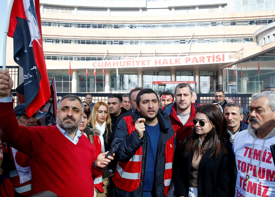 Maltepe Belediye Başkanı Ali Kılıç'ın tekrar aday gösterilmesini protesto eden ve kendilerine "kırmızı yelekliler" ismini veren grup, Cumhuriyet Halk Partisi (CHP) Genel Merkezi önünde parti yönetimine tepki gösterdi