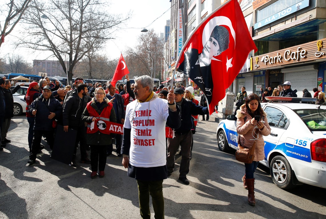 Üzerlerinde, "Temiz toplum, temiz siyaset" yazılı kırmızı yelekler bulunan CHP'liler, partinin Ankara İl Başkanlığı önünde bir araya gelerek, Atatürk posteri ve bayraklar eşliğinde Anıtkabir'e kadar yürüdü.