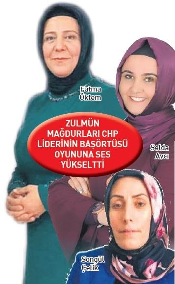 CHP Lideri Kemal Kılıçdaroğlu başörtüsü konusundaki istismar siyaseti nedeniyle tepki çekmeye devam ediyor. Başkan Recep Tayyip Erdoğan'ın 'Dürüstsen gel anaasal olarak çözelim' dediği meseleye yanaşmayan Kılıçdaroğlu'na 28 Şubat başta olmak üzere başörtüsü zulmünün mağdurları tepki gösterdi ve "Başörtümüzü kirli siyasetine alet etme" dedi.