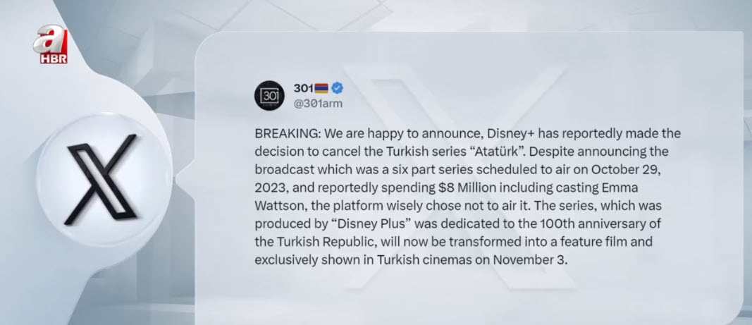 Ermeni lobisi istedi milyonlarca liralık dev yapım "Atatürk" dizisi apar topar Disney Plus'ın yayın akışından çıkarıldı.